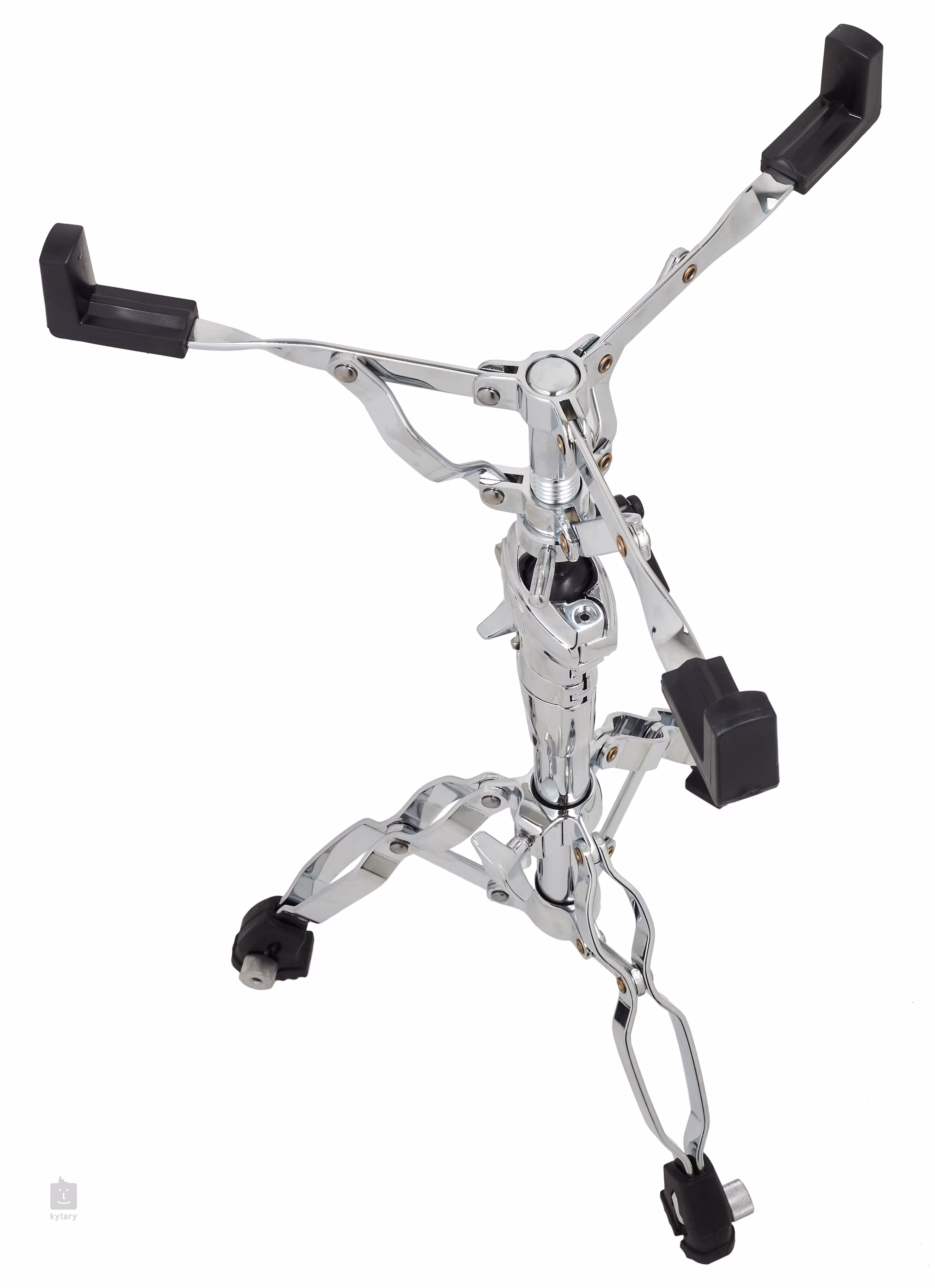 Alles an diesem professionellen Snare-Ständer ist auf Stabilität und maximale Verstellbarkeit ausgerichtet. Die Stabilität wird durch die robuste Konstruktion und die Möglichkeit der Verwendung von drehbaren Spikes gewährleistet. Die Stativbeine können sehr weit voneinander entfernt sein, was den Schwerpunkt des gesamten Stativs senkt. Die Neigung des Snarekorbs kann dank eines Kugelgelenks frei eingestellt werden.