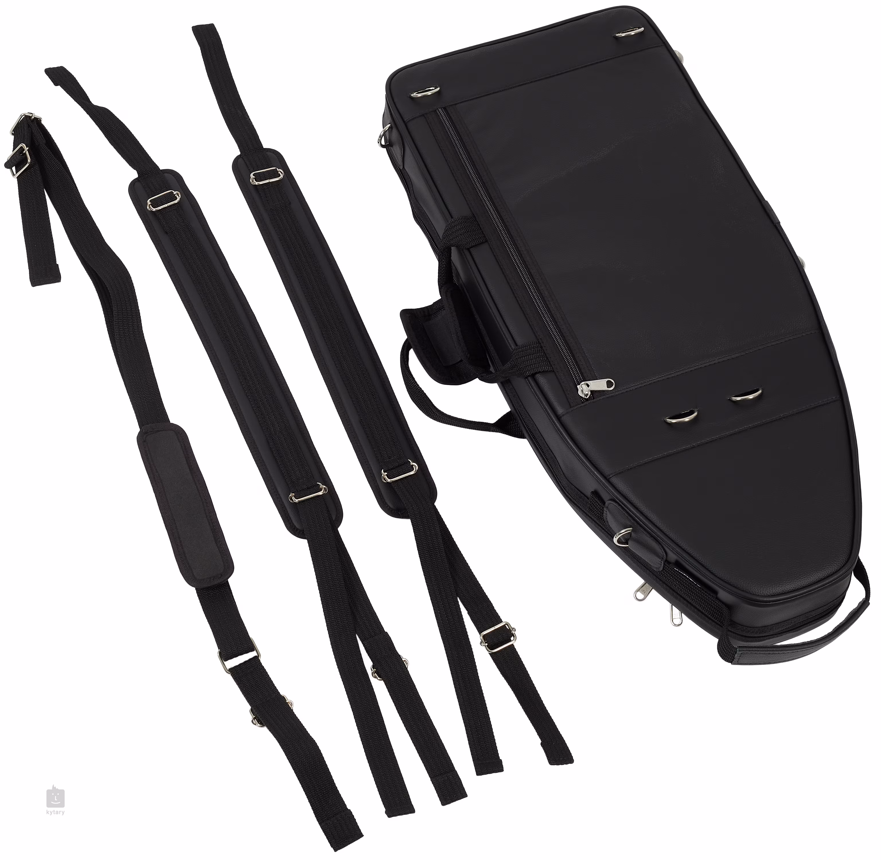 Dieser Marcus Bonna-Koffer ist für ein Fagott in Standardgröße geeignet. Die Fiberglas- oder Kohlefaserkonstruktion ist außen mit einer Nylonschale überzogen, die Innenseite ist mit Leder bezogen. Die beiden Asse können auf dem Boden des Koffers unter dem Instrument platziert werden, oder in einer größeren Außentasche mit Reißverschluss, in der z.B. auch ein Notebook Platz findet. Weiteres Zubehör kann in den Innenfächern des Koffers oder in den äußeren Fronttaschen mit Reißverschluss untergebracht werden. In der Tasche auf der Rückseite können Sie Ihre Notizen sicher aufbewahren.