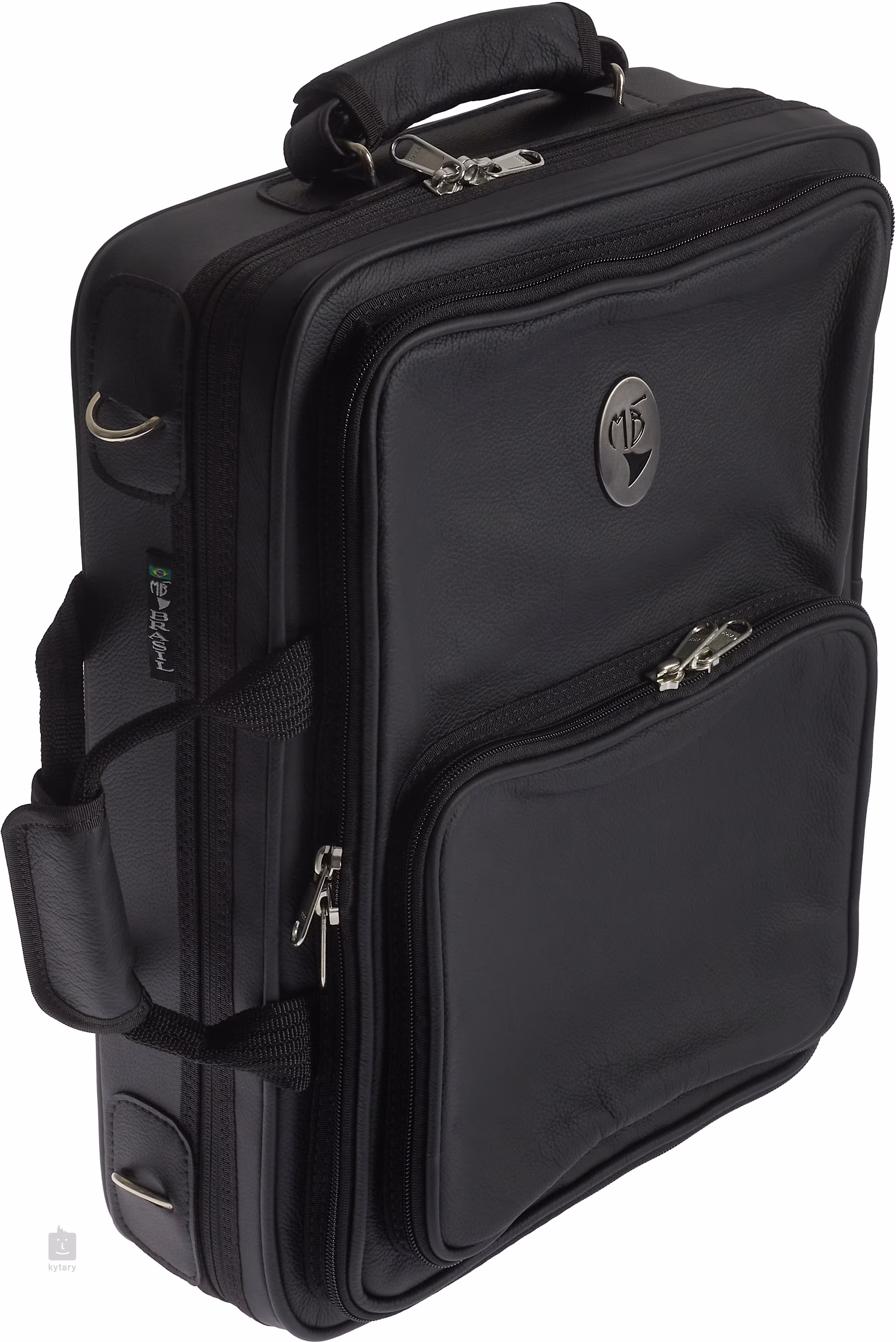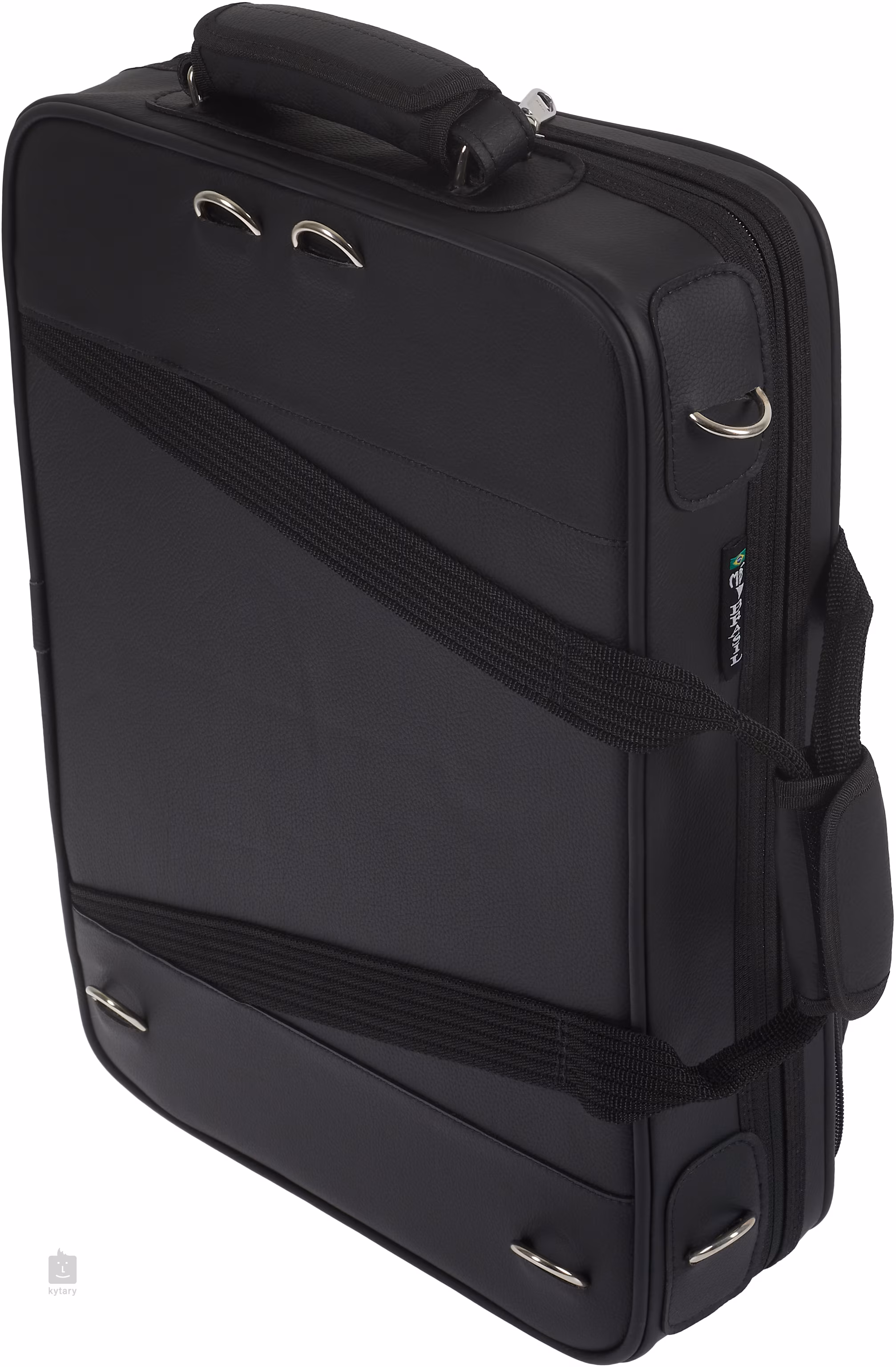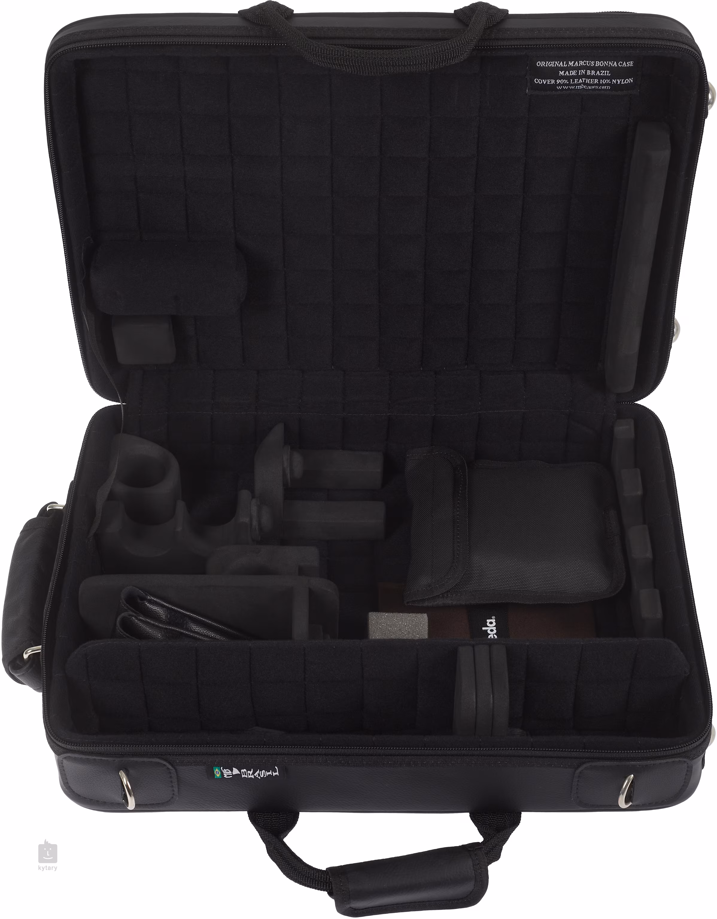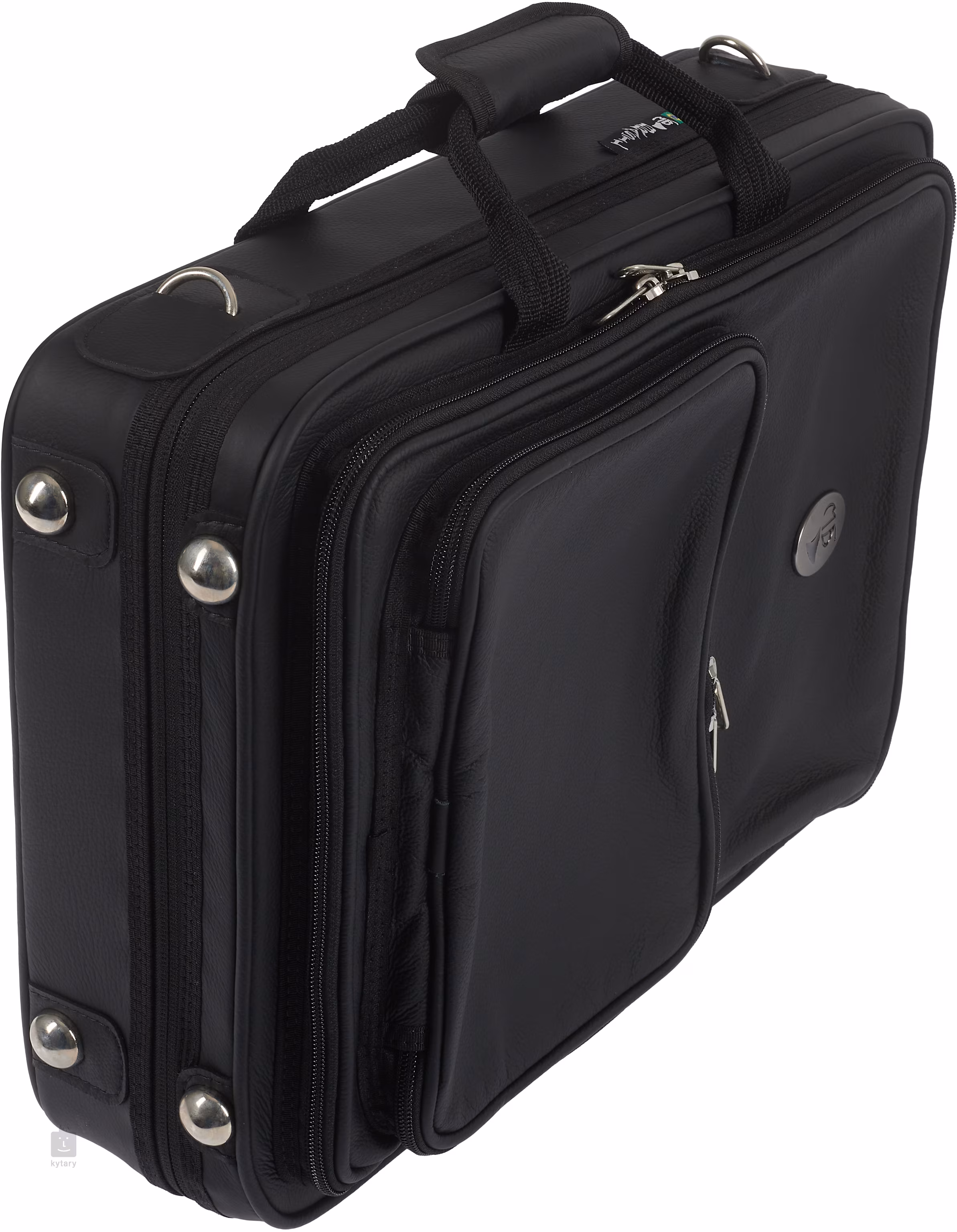 Koffer für zwei Klarinetten (Bb und A). Die Konstruktion aus Glasfaser (Fiberglas) oder Kohlefaser ist außen mit Leder überzogen, innen mit Leder bezogenem Schaumstoff. Im Inneren bietet der Koffer Platz für vier Fässer und zwei Etuis für Blätter.