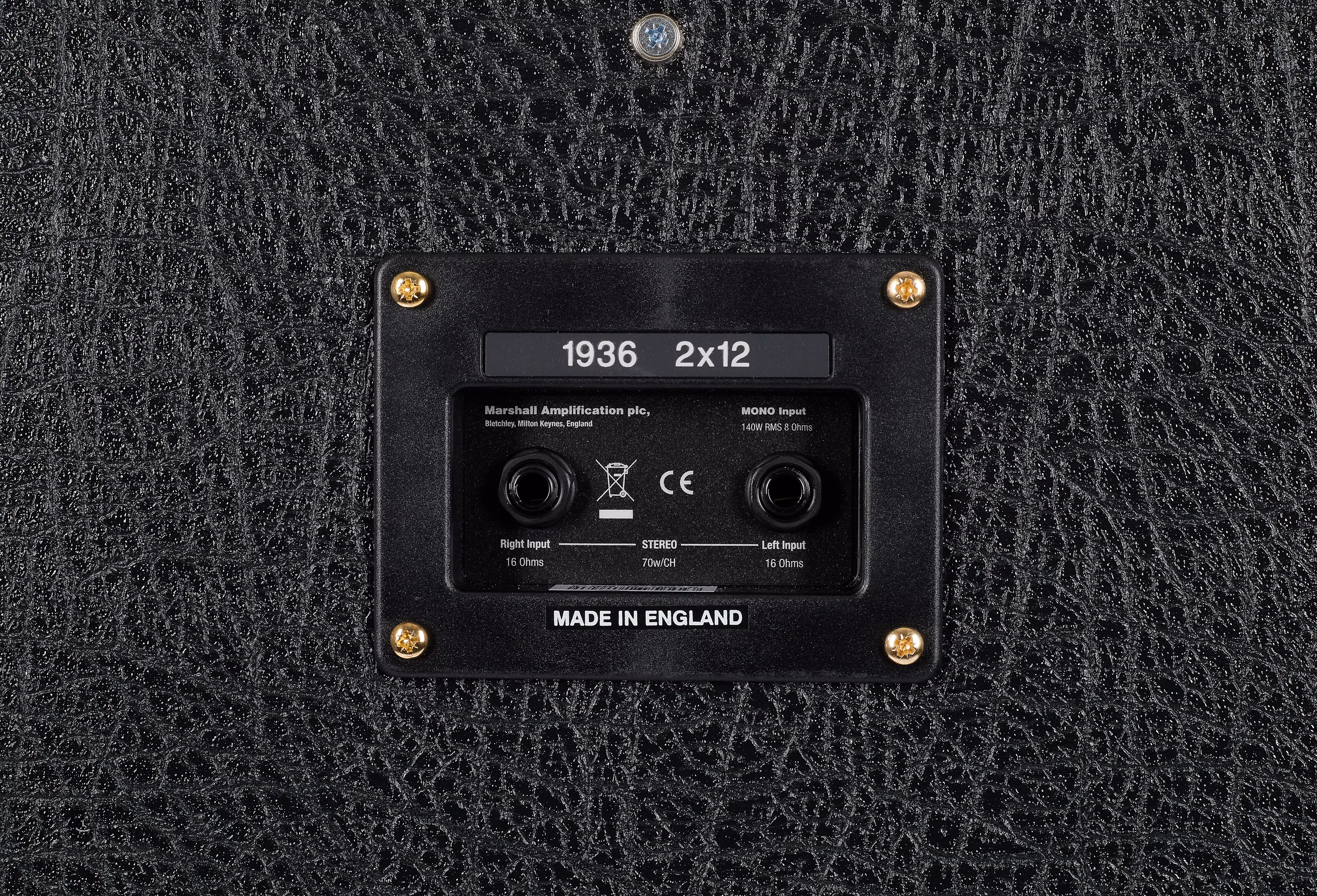 Der Marshall 1936V Lautsprecher mit einer Leistung von 140 Watt, einem kleineren 2x 12 Gehäuse und damit einem geringeren Gewicht als 4x 12 Boxen ist die ideale Wahl für Musiker, die in Clubs, Theatern und allgemein in mittelgroßen Räumen spielen. Zwei 12-Zoll-Lautsprecher Celestion G12 Vintage verleihen der Box einen warmen, eher vintageartigen Klang als die Standardmodelle 1936. Die Lautsprecherbox kann sowohl in Mono (8 Ohm) als auch in Stereo (16 Ohm) betrieben werden.