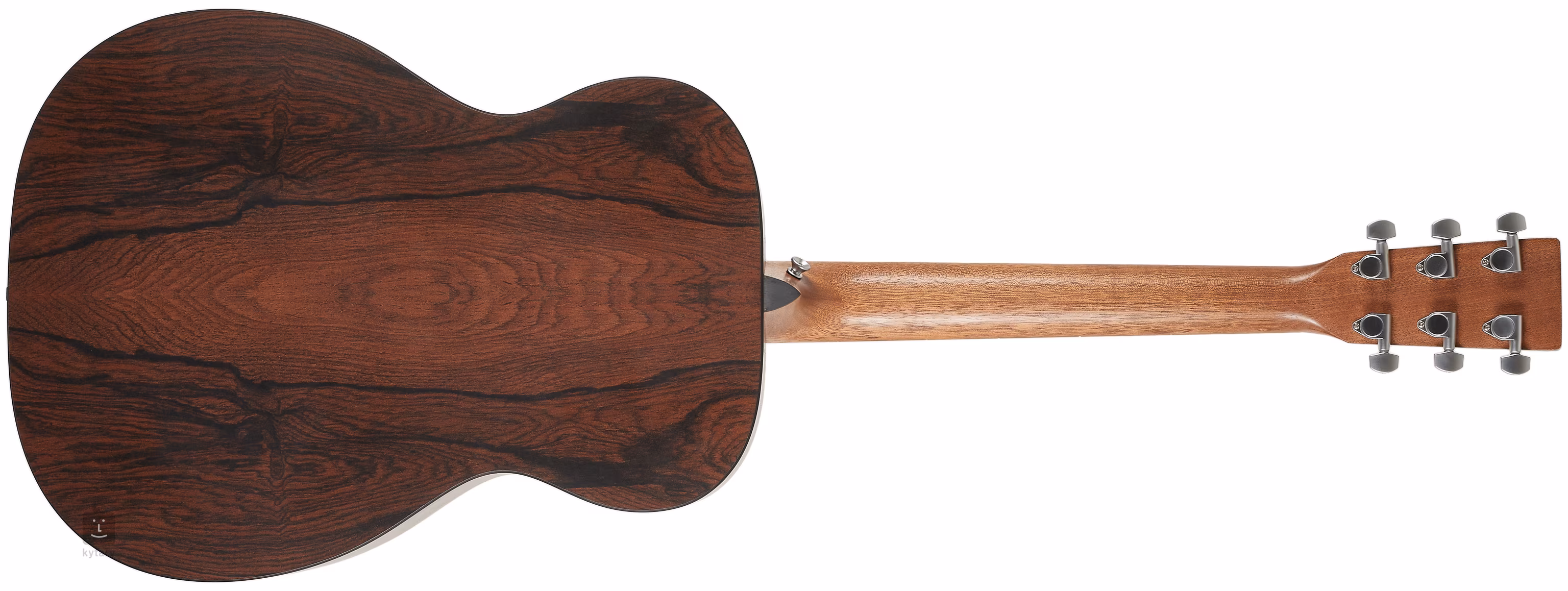 Die Martin E-1 Aktiv-Elektronik mit Lautstärke- und Tonreglern im Schallloch der Gitarre und Push/Push-Schaltern für Phase (180 Grad Phasendrehung) und Tuner, der das chromatische Stimmgerät aktiviert. Die Gitarre wird in einem Qualitätskoffer (Soft Shell) geliefert, so dass sie sofort in den Kofferraum Ihres Autos/Vans geladen werden kann, um auf langen oder kurzen Reisen Ihren musikalischen Träumen nachzugehen.