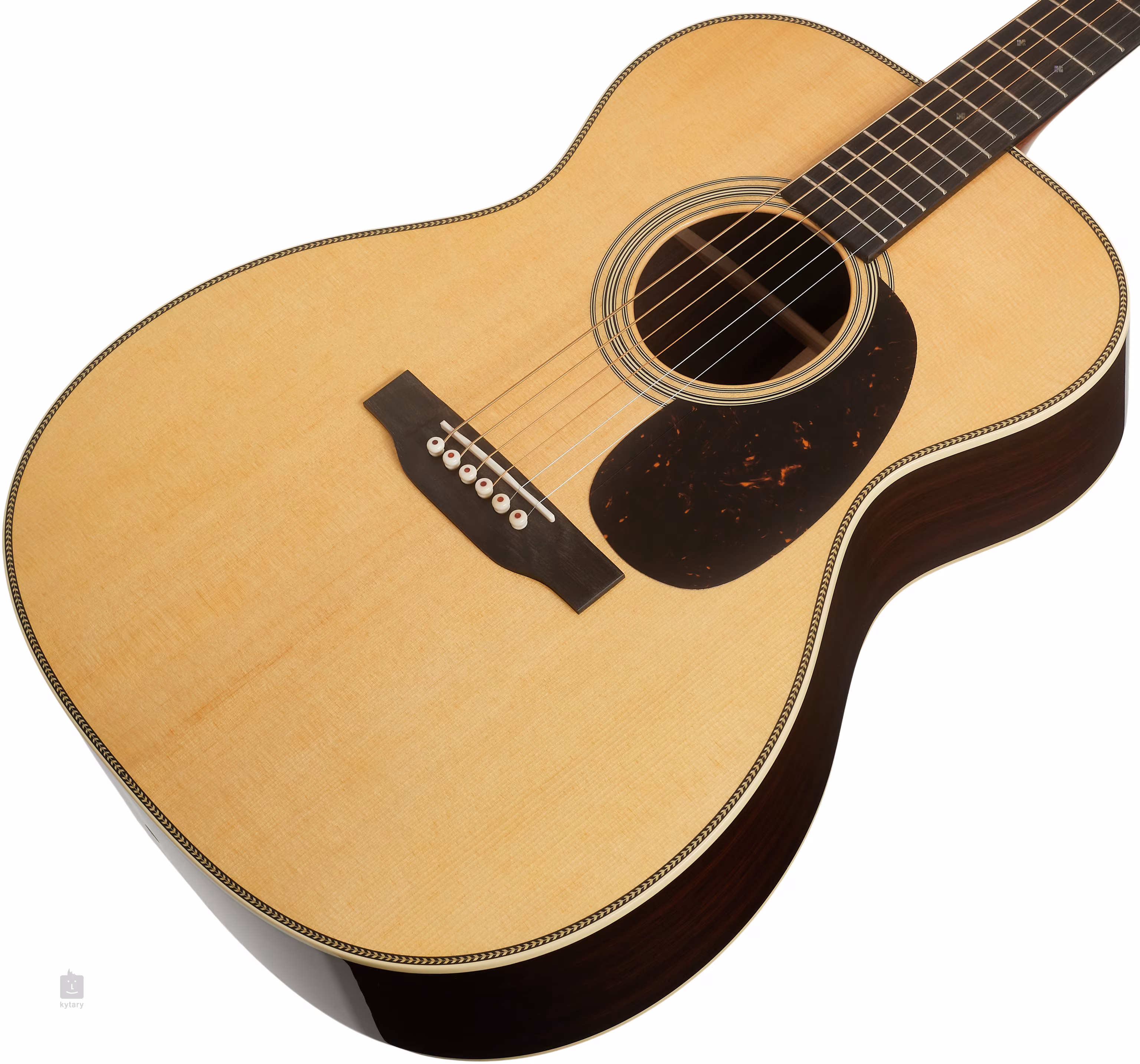 Die Akustikgitarre Martin 000-28 bietet den Spielkomfort eines mittelgroßen „Triple-X”-Korpus und einen ausgewogenen Klang, den Sie sowohl beim Fingerpicking als auch beim Spielen mit dem Plektrum zu schätzen wissen werden. Die Decke der Gitarre ist aus massivem Fichtenholz gefertigt, der Boden und die Zargen sind aus indischem Palisanderholz. Die Resonanz der Decke und die insgesamt guten akustischen Eigenschaften der Gitarre werden durch eine spezielle, abgesenkte GE Scalloped (Golden Era) Verstrebung (X-Brace) verstärkt.