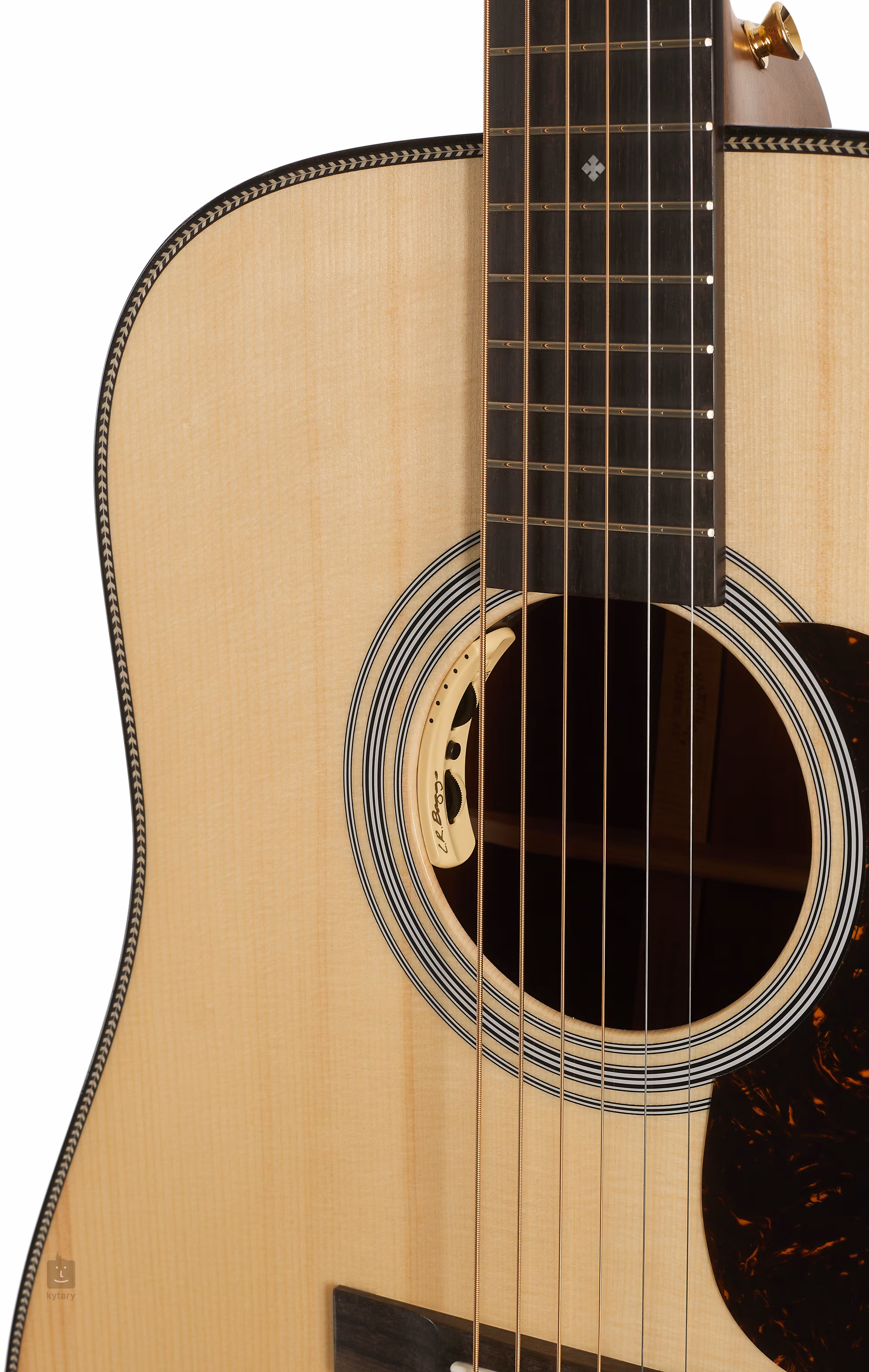 Für die originalgetreue Übertragung des akustischen Klangs sorgt die L.R. Baggs Anthem-Elektronik mit patentierter Tru-Mic-Technologie, die Mikrofonabnahme und Element-Subcoil-Tonabnehmer kombiniert. Die Regler sind diskret im Schallloch der Gitarre untergebracht. Die Gitarre wird in einem Tragekoffer geliefert, so dass sie sofort in Ihr Auto/Van geladen werden kann, um auf langen oder kurzen Reisen Ihren musikalischen Träumen nachzugehen.