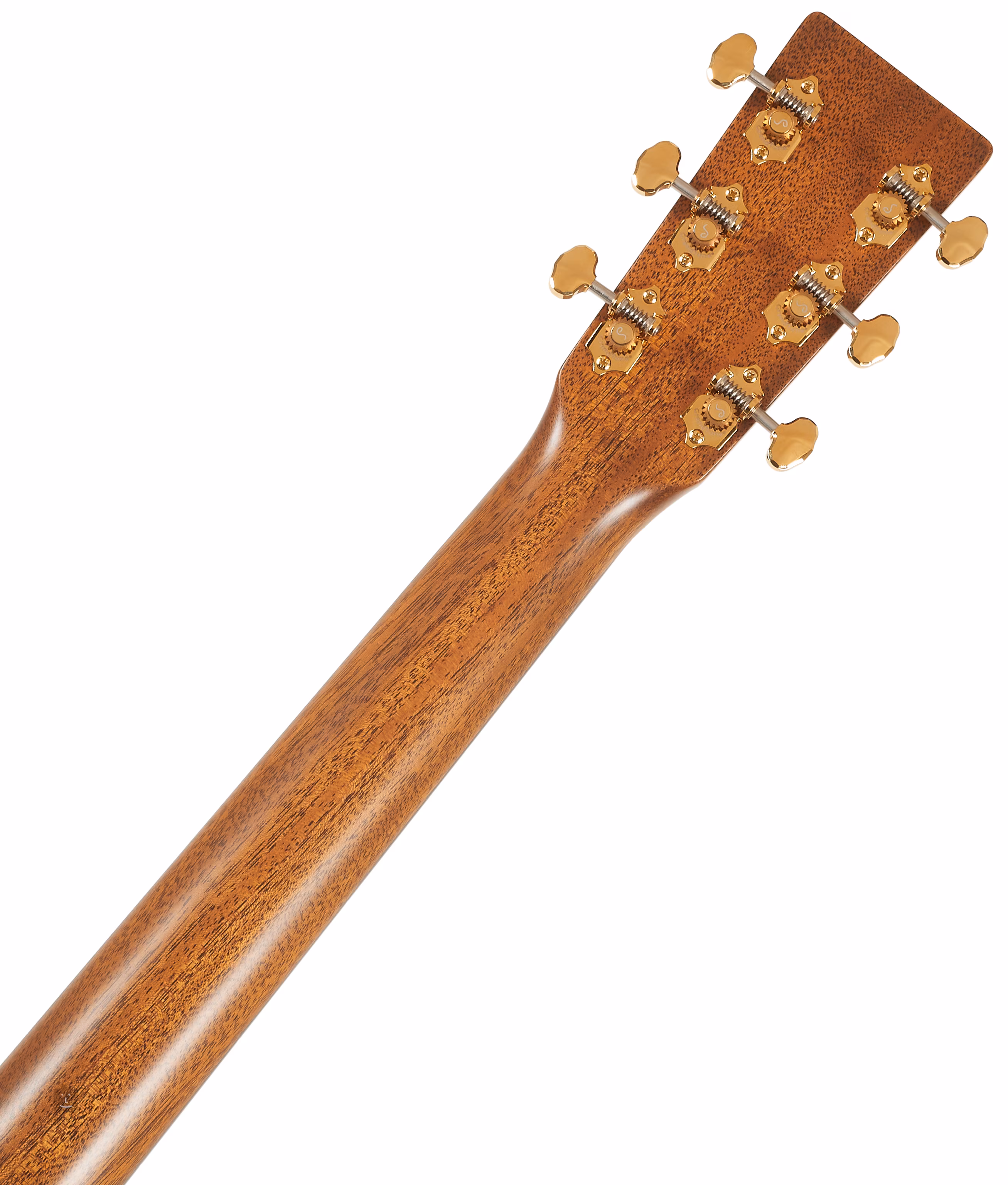 Ein Ebenholz-Griffbrett mit 20 Bünden ist auf den Select Hardwood-Hals geleimt. Die Orientierung auf dem Griffbrett wird durch Perlmutt-Positionsmarkierungen in Form von kleinen Rauten und Quadraten (Mother of Pearl) und seitlichen weißen Dots erleichtert. Präzises Stimmen und gutes Sustain werden durch die Saitenaufhängung über den kompensierten Sattel und den Knochen-Nullbund in den Schaller Gold GrandTune-Mechaniken und dem Ebenholz-Griffbrett gewährleistet. Das edle Aussehen des Instruments wird durch die Korpusumrandung aus Ebenholz, das Schlagbrett aus Schildpattimitat, das Backboard Bracing und das Palisanderfurnier an der Kopfplatte unterstrichen.