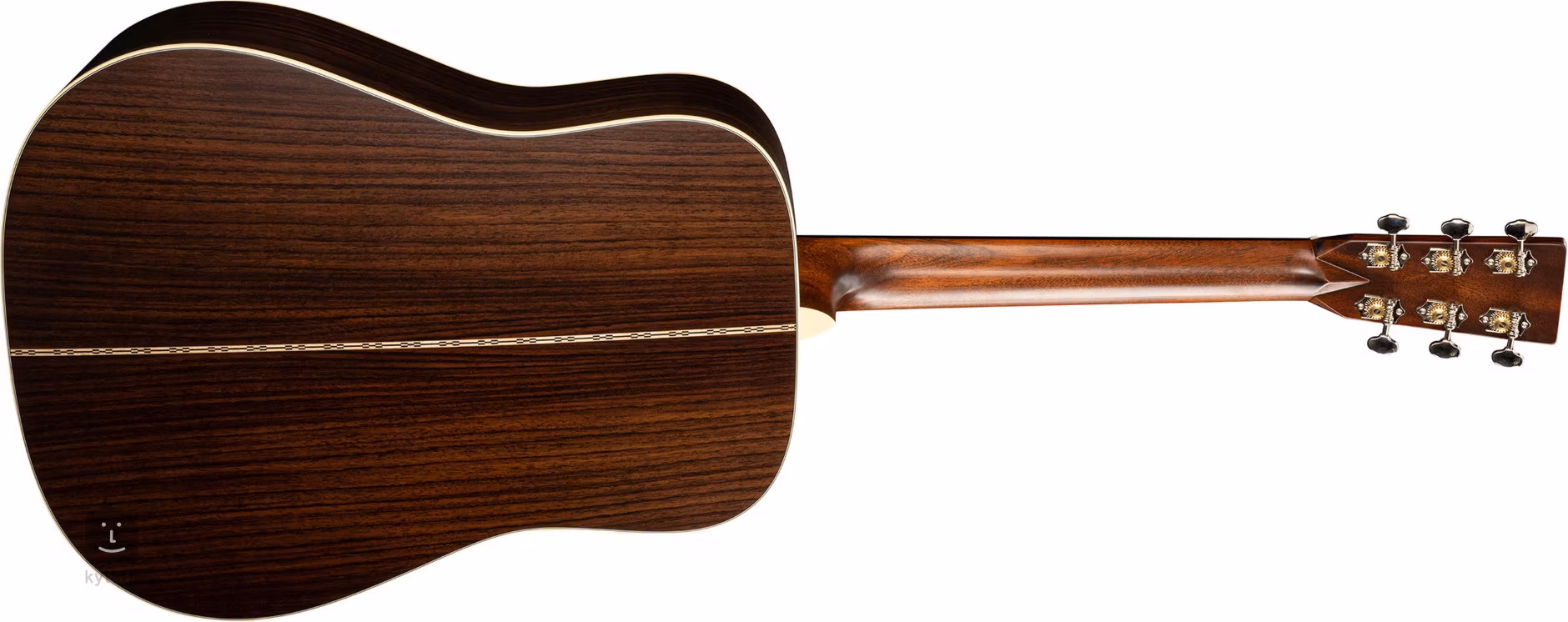 Auf den Hals aus ausgewähltem Hartholz ist ein Ebenholzgriffbrett mit zwanzig Bünden aufgeklebt. Die Orientierung auf dem Griffbrett erleichtern Perlmutt-Positionsmarkierungen (Mother of Pearl) und seitliche weiße Punkte. Der kompensierte Sattel aus Knochen auf dem Ebenholzsteg sorgt zusammen mit dem Nullbund aus Knochen für eine hervorragende Resonanz und einen langen Sustain. Die stilvolle Verarbeitung wird durch die Einfassung in Antique White, die offenen Nickelmechaniken mit Butterbean-Stimmwirbeln und das Pickguard aus Imitations-Schildpatt unterstrichen, das den Lack der Gitarre vor Kratzern schützt.