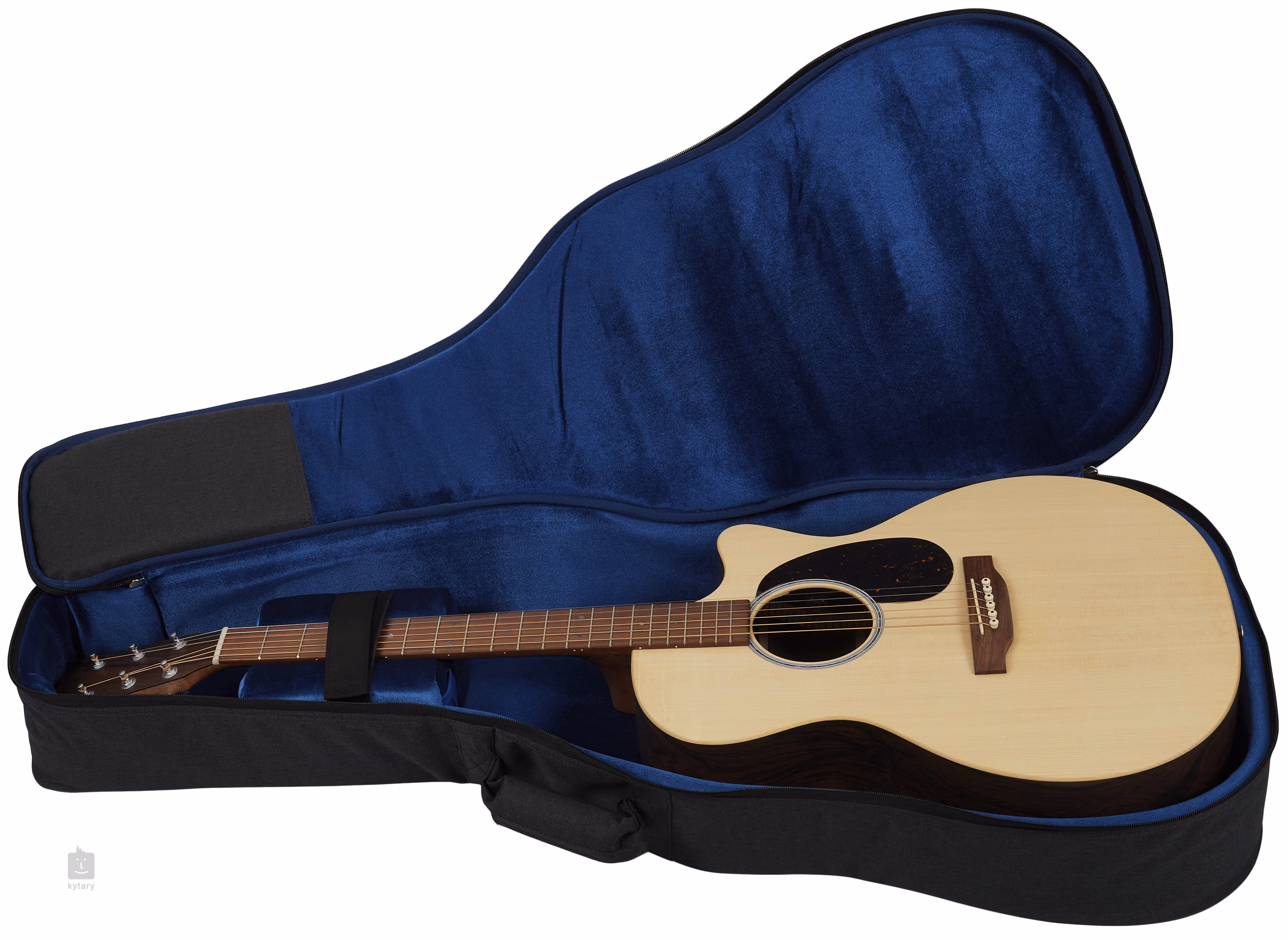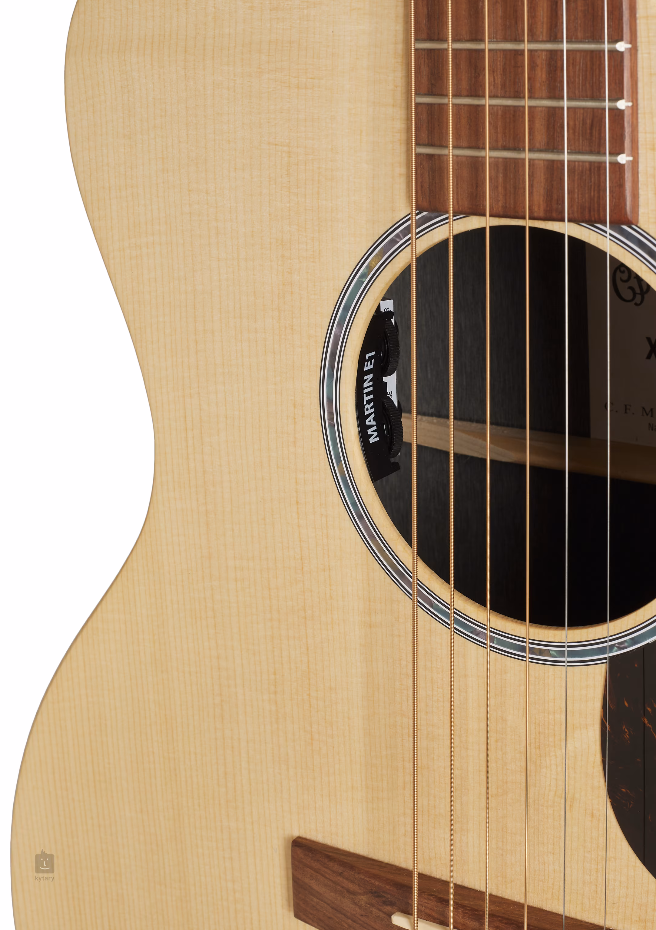 Die Martin E-1 Aktiv-Elektronik mit Lautstärke- und Tonreglern im Schallloch der Gitarre und Push/Push-Schaltern für Phase (180 Grad Phasendrehung) und Tuner, der das chromatische Stimmgerät aktiviert. Die Gitarre wird in einem Qualitätskoffer (Soft Shell) geliefert, so dass sie sofort in den Kofferraum Ihres Autos/Vans geladen werden kann, um auf langen oder kurzen Reisen Ihren musikalischen Träumen nachzugehen.