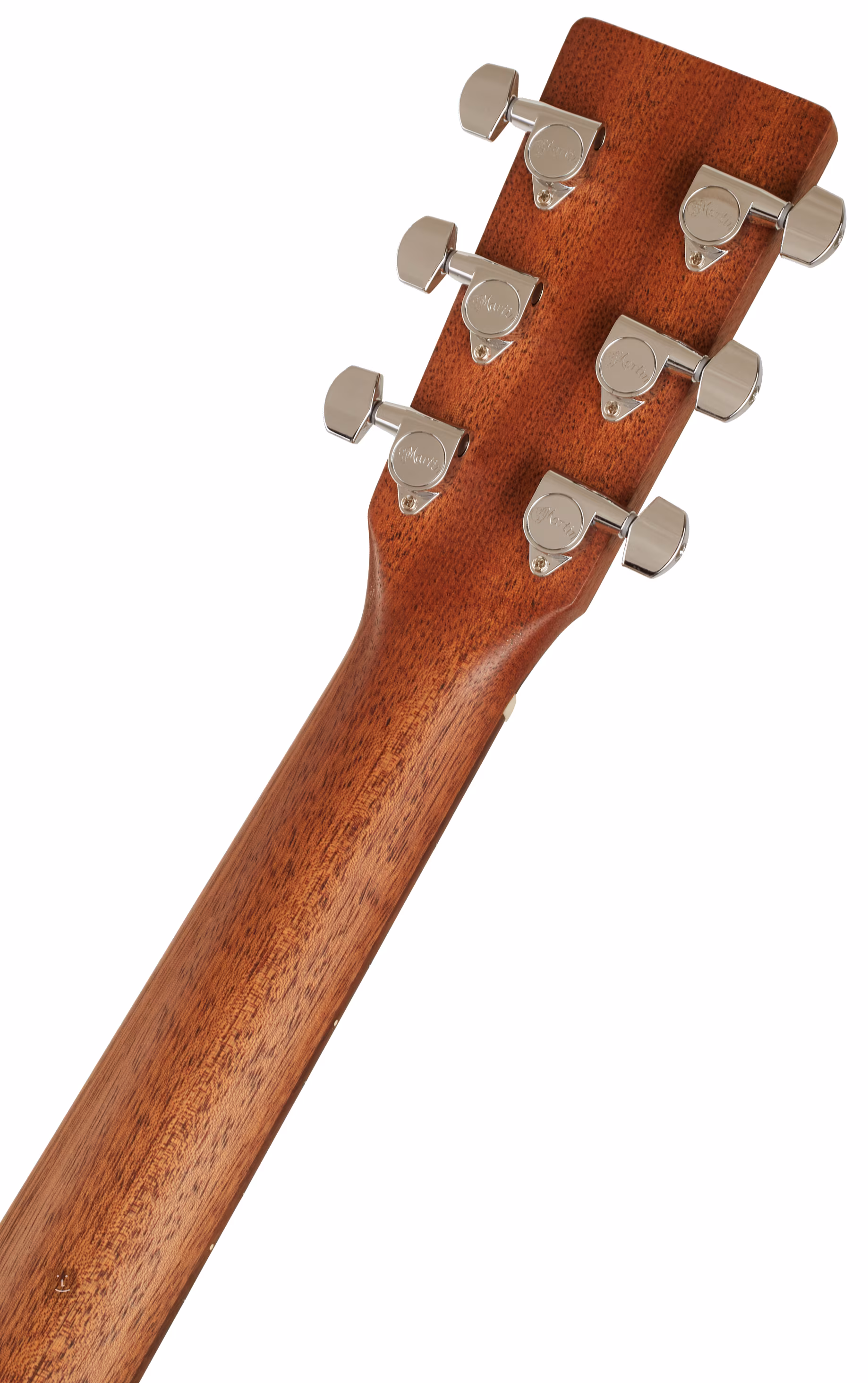 Der Hals aus Select Hardwood, der standardmäßig am vierzehnten Bund mit dem Korpus verbunden ist, wird durch ein Select Hardwood x-Griffbrett mit zwanzig Bünden ergänzt. Ein kompensierter TusQ-Verbundstoffsattel auf einer Catalox-Kopfplatte verleiht den Saiten zusammen mit einem Corian-Bund eine hervorragende Resonanz und Sustain. Ein schwarzes Schlagbrett schützt den Lack der Gitarre vor Kratzern, die durch Plektrumspiel verursacht werden. Das endgültige Aussehen des Instruments wird durch verchromte Stimmmechanismen unterstrichen.