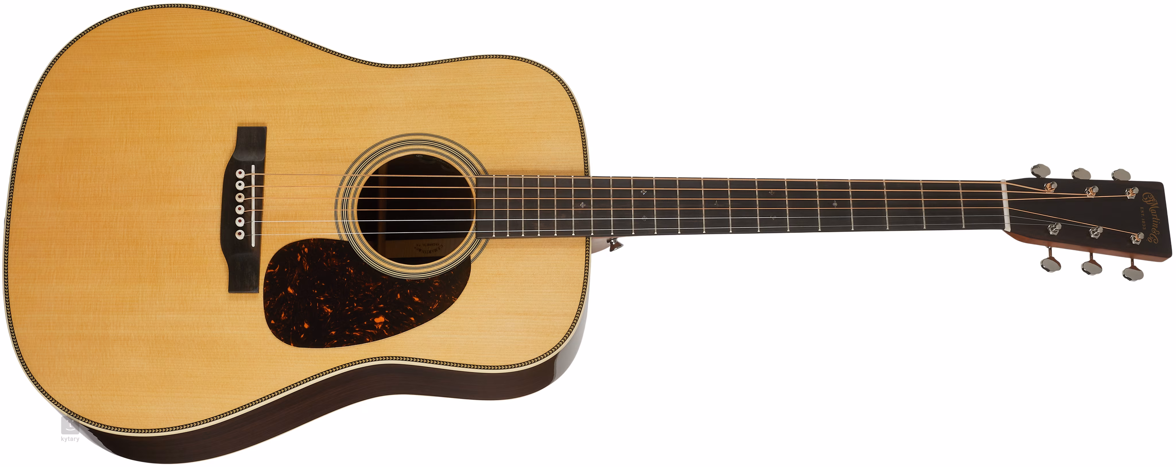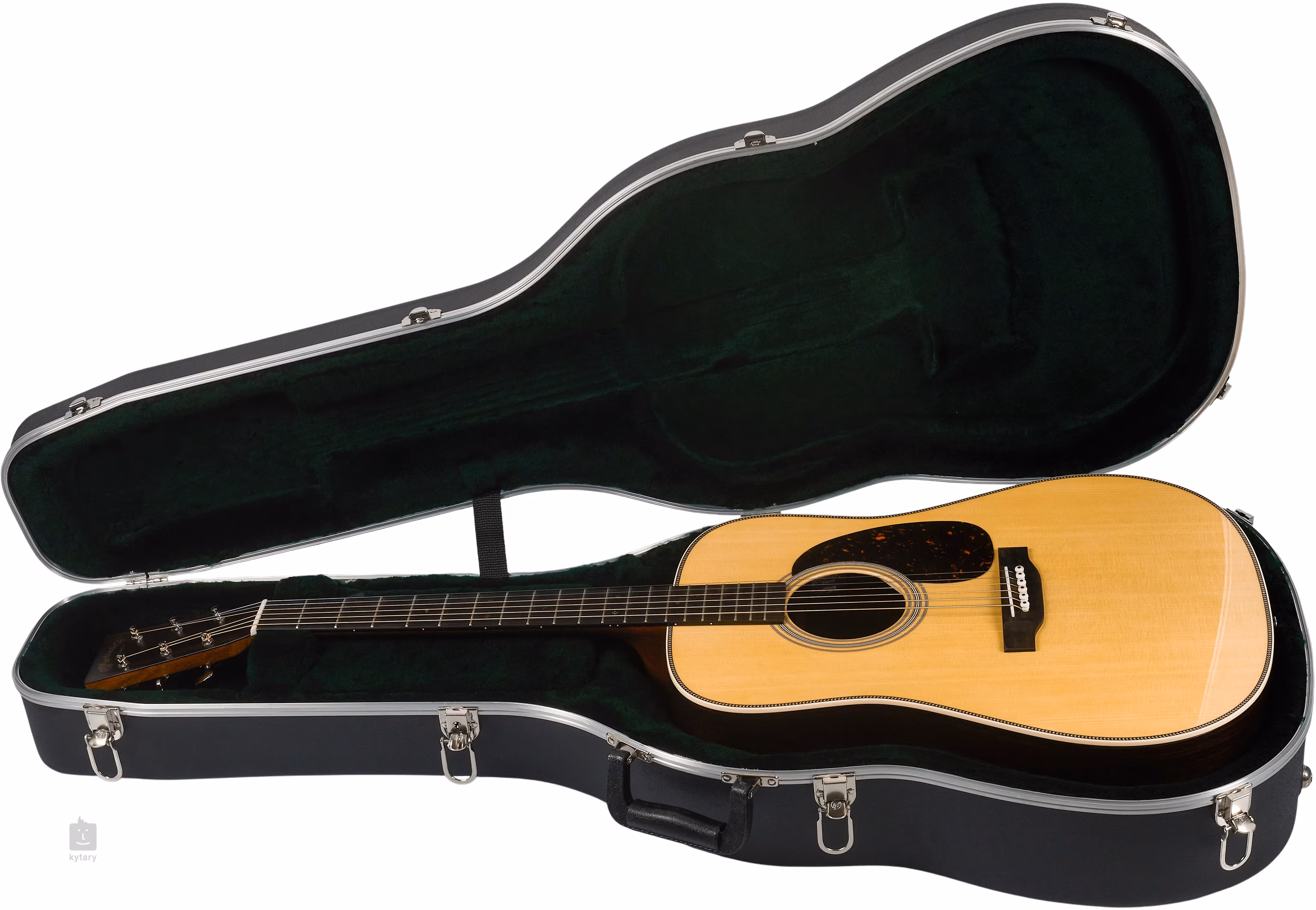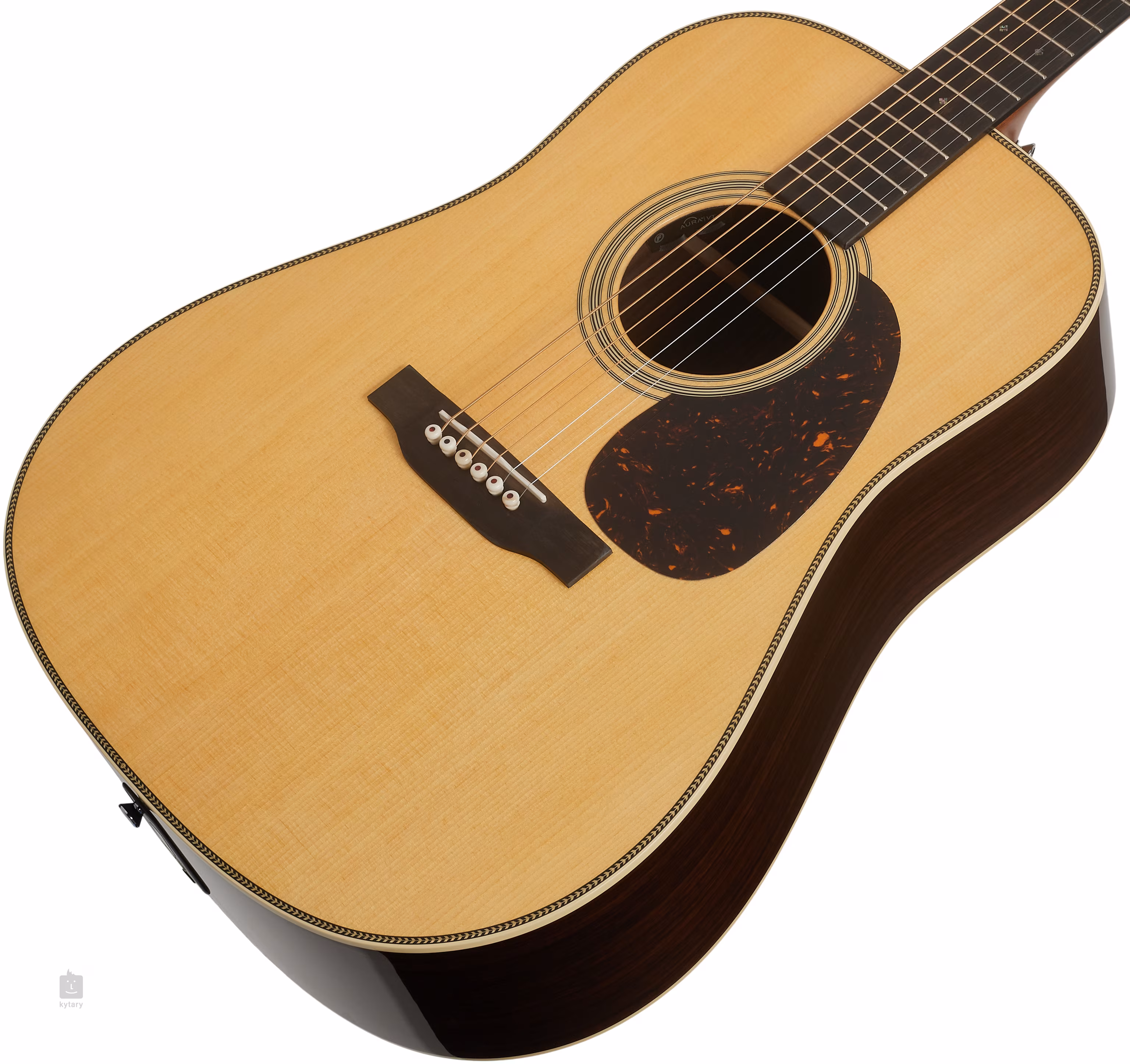 Die elektroakustische Gitarre Martin HD28E ist die Verkörperung des zeitlosen Klangs und Designs von Dreadnought-Gitarren, die in allen Musikgenres Anwendung finden und seit Jahrzehnten die moderne Popmusik prägen. Die Decke ist aus massivem Fichtenholz gefertigt, Boden und Zargen aus ostindischem Palisander. Die Resonanz der Decke und die insgesamt guten akustischen Eigenschaften der Gitarre werden durch eine spezielle, abgesenkte GE Scalloped (Golden Era) Verstrebung (Forward-Shifted X-Brace) verstärkt.