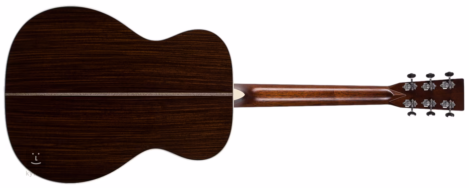 Die Vorderseite der Gitarre besteht aus massiver nordamerikanischer Fichte (Engelmann-Fichte), der Boden und die Zargen aus massivem indischem Palisanderholz. Diese Holzkombination verleiht dem Instrument eine große Klangprojektion, klangliche Artikulation und Ausgewogenheit über das gesamte Frequenzspektrum. Die X-förmig gewellte Zargenstruktur mit abgesenkten Zargen in der Mitte verleiht der Gitarre einen reichen, farbenreichen Klang, der sich hervorragend für Jazz/Blues/Folk oder Pop eignet.