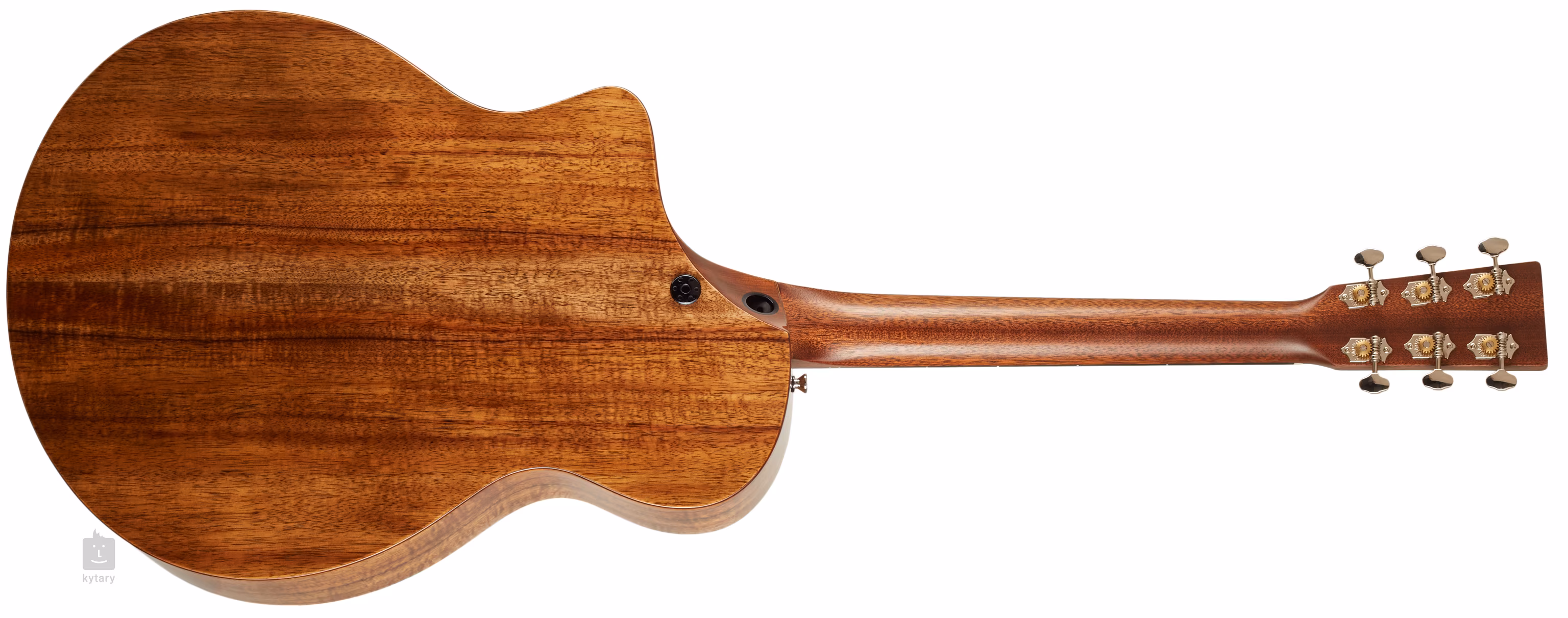 Die Vorderseite der Gitarre besteht aus massiver Sitka-Fichte, während der Boden und die Zargen aus hawaiianischem Koa-Sperrholz mit einer charakteristischen schönen Maserung gefertigt sind. Der Hals aus ausgewähltem Hartholz, der ungewöhnlicherweise am dreizehnten Bund mit dem Korpus verbunden ist, wird durch ein Ebenholzgriffbrett mit zwanzig Bünden ergänzt. Die Spiel- und Klangeigenschaften der Gitarre werden durch einen ergonomisch geformten Halsfuß und spezielle reduzierte X-Rippen (Scalloped X-Brace) verbessert.