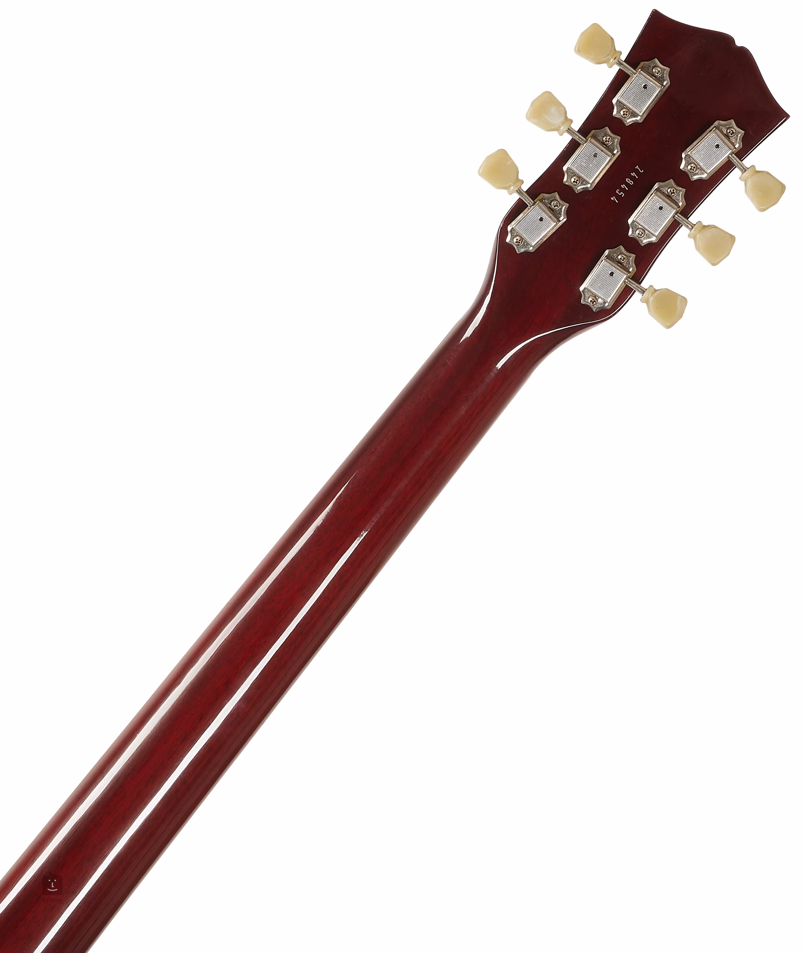 Der Korpus ist mit Nitrocellulose-Lack überzogen und weist subtile Elemente künstlicher Patina in Form von kleinen Lackabschürfungen auf. Erfahrene Gitarrenbauer haben sich um den authentischen, gealterten Look der Gitarre gekümmert, so dass Sie sofort die Nostalgie und das pure Vintage-Gefühl des Rock 'n' Roll spüren.