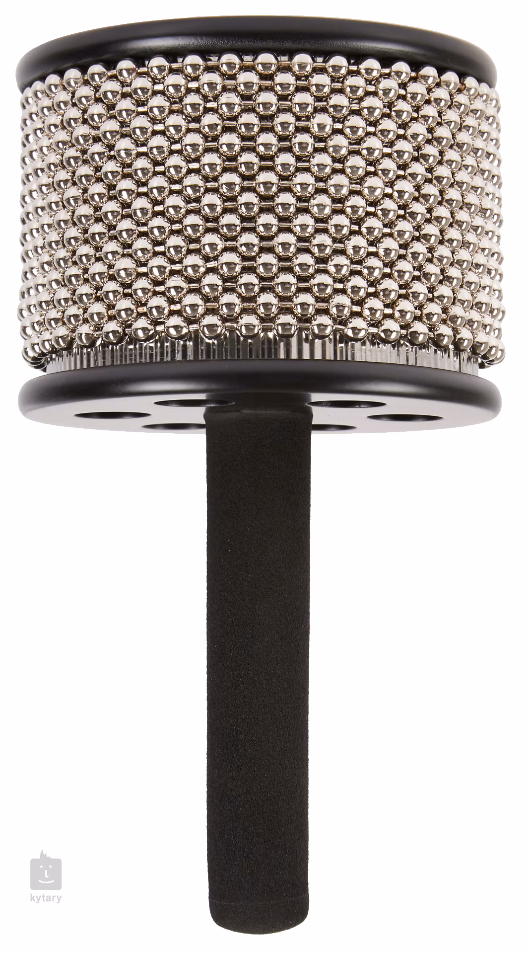 Diese Cabasa besteht aus einem Stahlzylinder, um den ebenfalls eine Stahlkette gewickelt ist. Der Griff der Cabasa ist dann aus Holz und hat eine leichte Polsterung für einen angenehmeren Griff. Sie erzeugt einen metallisch rasselnden Klang, der eine ziemlich gute Beherrschung des Instruments erfordert, um ihn zu bändigen. Die größeren Modelle haben einen stärkeren Klang, während die kleineren weicher klingen und leichter zu handhaben sind.