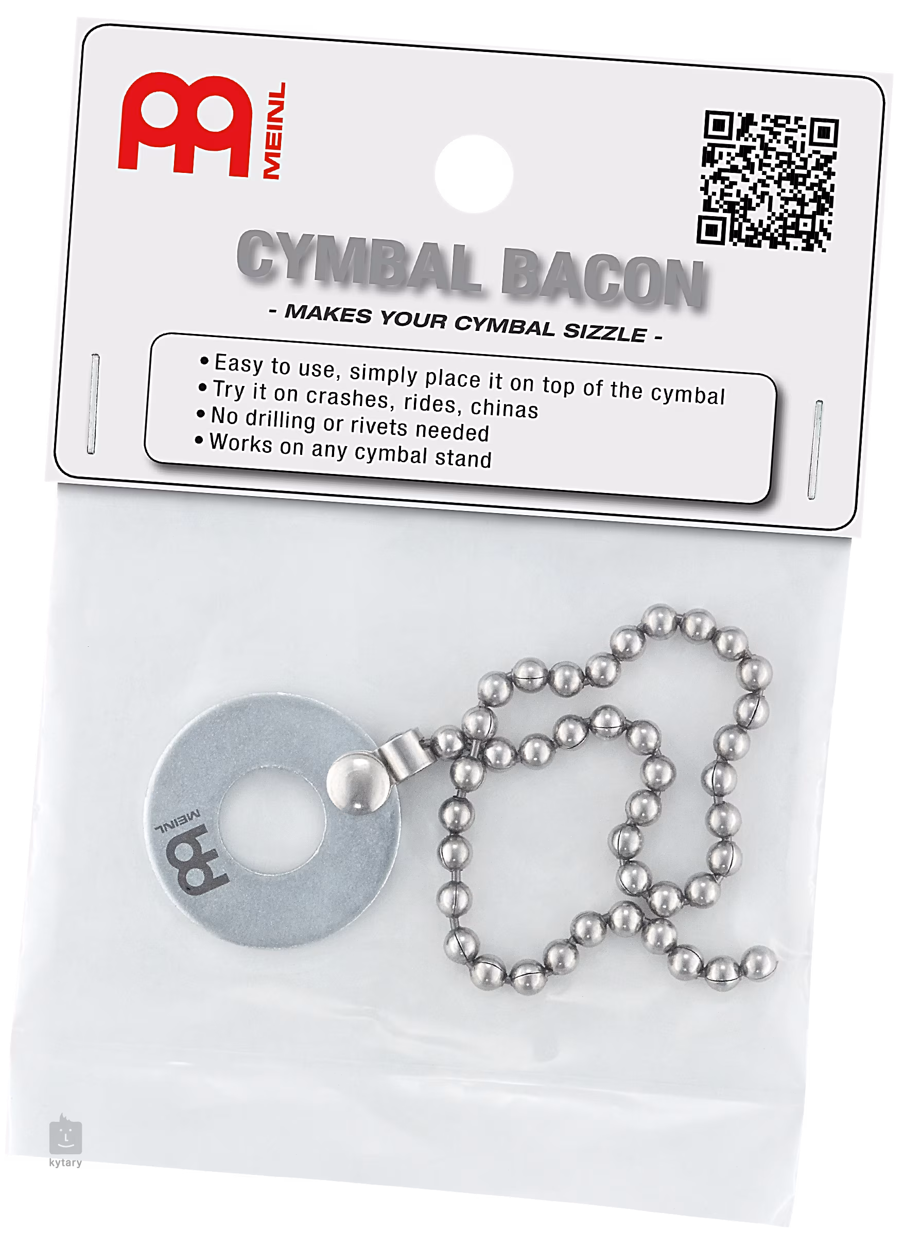 Cymbal Bacon von Meinl ist eine Beckenkette, die den Klang der Nieten von Sizzle-Becken imitiert. Der charakteristische Klang wird erreicht, indem die Kette einfach auf das Becken gelegt wird.