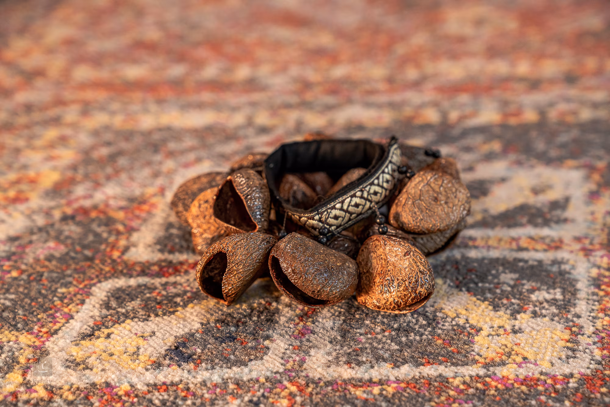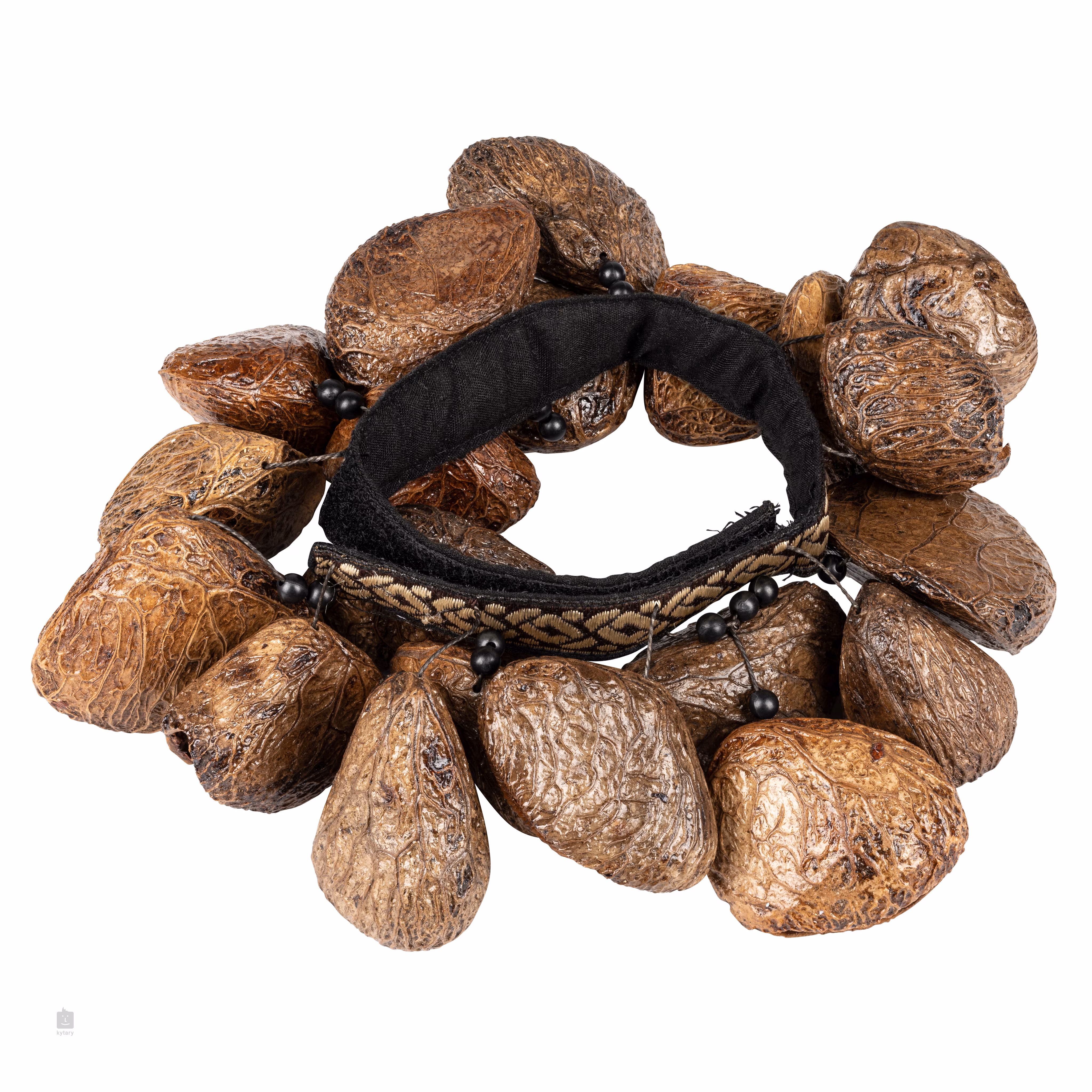 Dieses einzigartige Perkussionsinstrument besteht aus Glocken, die aus Pangi-Samen hergestellt und an einem Armband befestigt sind. Er hat einen ganz besonders warmen und lauten Klang. Sie ist größenverstellbar und kann am Handgelenk oder am Knöchel getragen werden. Sie eignet sich als ergänzendes Instrument zum Djembe- oder Gitarrenspiel.