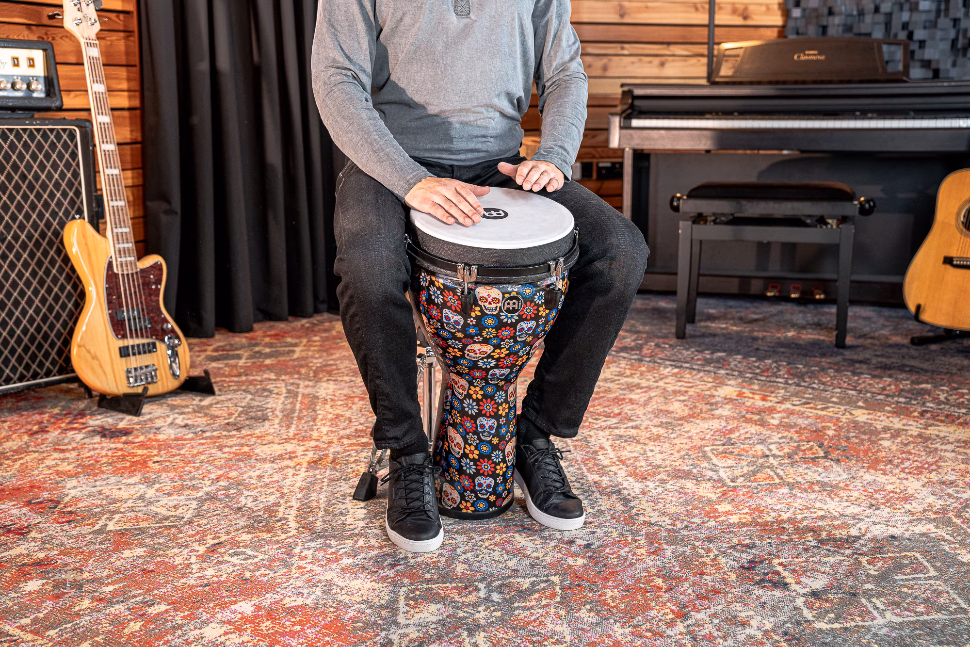 Wenn Sie eine wirklich hochwertige Djembe mit einem kraftvollen Klang suchen, die sich dank ihrer Langlebigkeit und ihres geringen Gewichts ideal für häufige Reisen eignet, sind Sie bei uns genau richtig. Diese Djembe aus der Meinl Jumbo-Serie ist aus einem leichten Kunststoff gefertigt, der nicht nur sehr haltbar und absolut wetterfest ist, sondern dem Instrument auch ein sehr breites Spektrum an Klangmöglichkeiten verleiht. Dazu trägt auch der größere Korpus bei, der dank seiner verbesserten Resonanzfähigkeit einen wirklich dicken Bass-Sound, aber auch scharfe und fokussierte Höhen oder Slap-Töne erzeugen kann. Die stabile und einfache Abstimmung wird durch die robuste Hardware gewährleistet, die auch für einen gleichmäßigen Klang sorgt. Dieses Modell zeichnet sich außerdem durch ein stilvolles Finish aus, das bestimmt nicht unbemerkt bleibt.