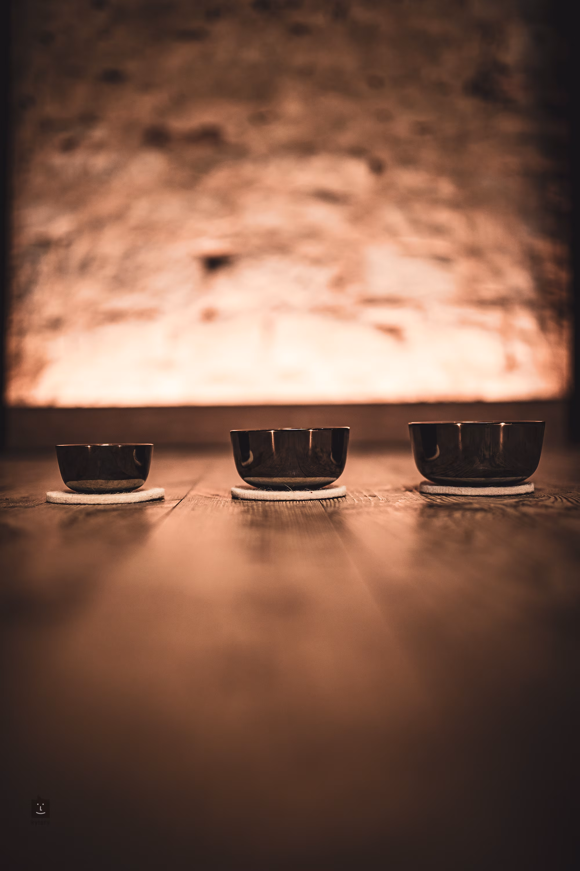 Diese besonderen Modelle basieren auf Klangschalen aus Japan, die einen wunderbar klaren und hohen Klang erzeugen, der besonders im Kopfbereich gerne eingesetzt wird. Das Set enthält drei kleine Schalen mit den Durchmessern 2,8", 3,5" und 3,9", eine Filzunterlage und einen Stoffüberzug für jede Schale oder einen Schlegel mit Gummikopf.