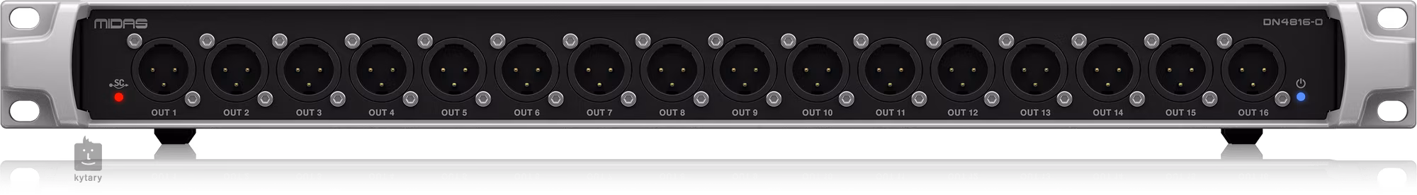 Das Midas DN4816-O ist ein analoges StageConnect-Interface mit sechzehn symmetrischen XLR-Ausgängen für andere StageConnect-Geräte, Midas HUB4 oder Behringer WING und Ultranet-Sender wie die Midas MR18/M32 und DL16/DL32 Stageboxen.