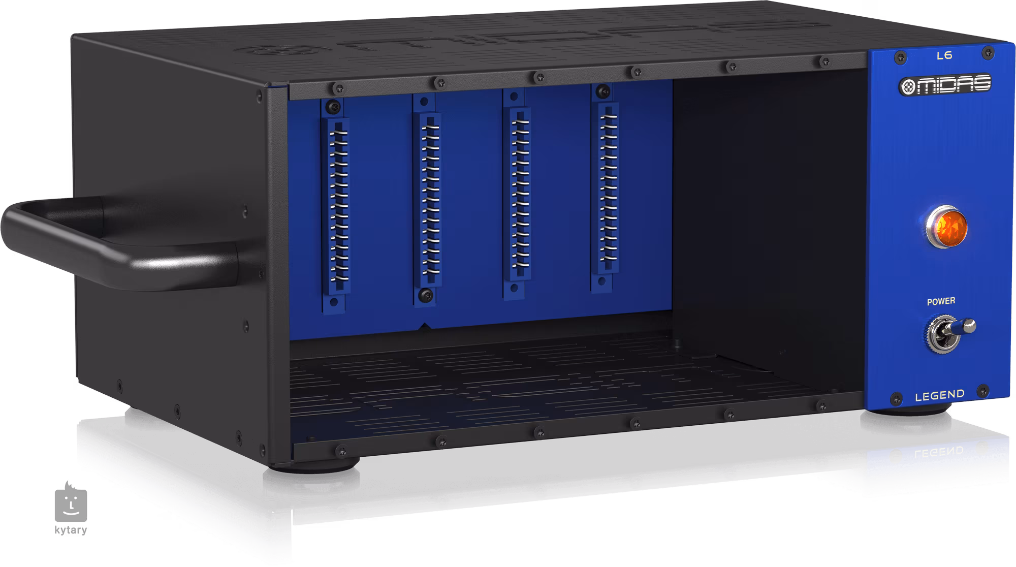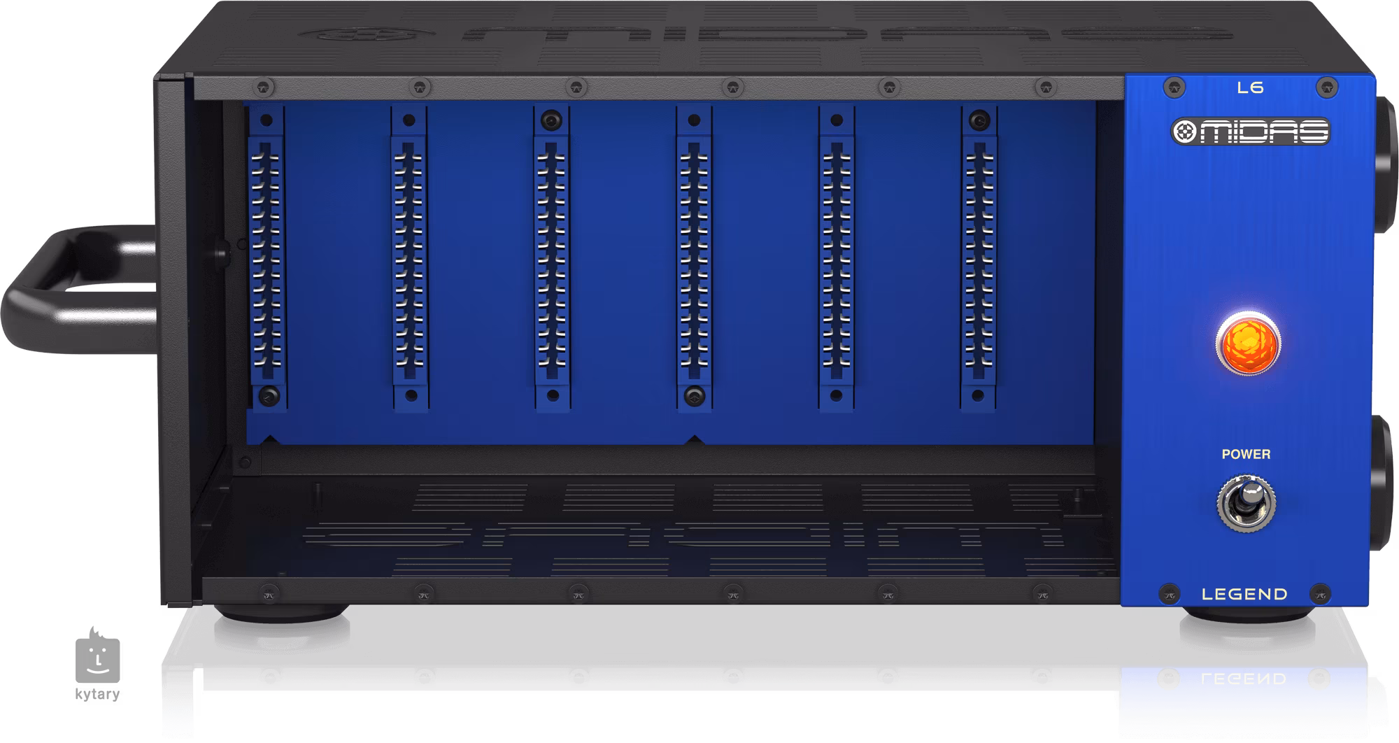 Midas L6 ist ein Rack-Chassis der Serie 500, das mit einer zentralen Stromversorgung mit einem ausreichend leistungsstarken Schaltnetzteil mit automatischer Regelung und fortschrittlicher Audio-Signalführung ausgestattet ist. Es können bis zu 6 Module angeschlossen werden, z. B. MICROPHONE PREAMPLIFIER 502, COMPRESSOR LIMITER 522, PARAMETRIC EQUALISER 512 und viele andere, die derzeit von Midas entwickelt werden oder ebenso gut für Module anderer Anbieter geeignet sind. Das Modell L6 ist als Desktop-Version erhältlich und wird ebenfalls mit abnehmbaren Rack-Halterungen geliefert, um die Standard-Rack-Länge auszufüllen, wobei es in der Höhe drei Positionen einnimmt.