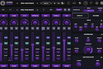 Modalics MINDst Drums ist ein virtuelles Instrument, das für die Erstellung von Percussion-Parts und das Echtzeitspiel mit z.B. E-Drums oder Pads entwickelt wurde.