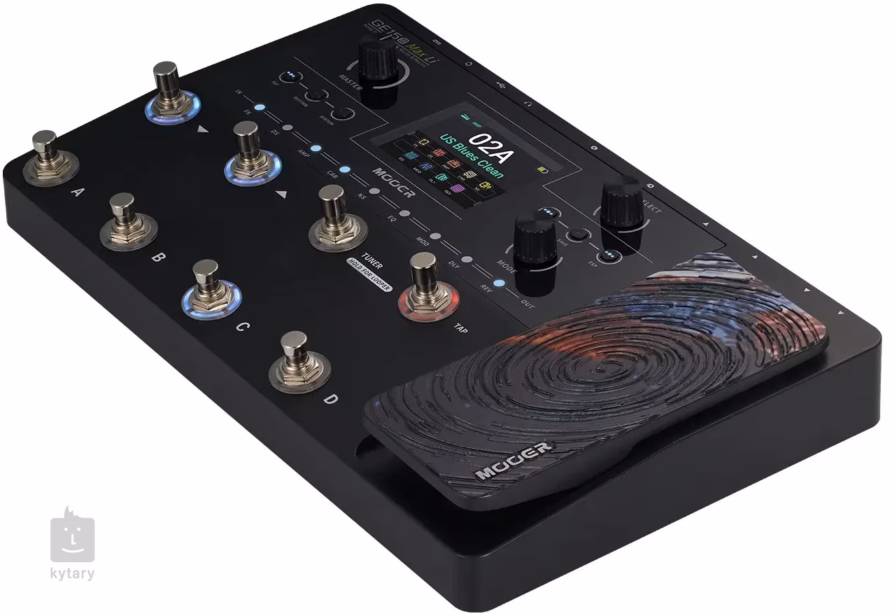 Der Gitarren-Multieffekt MOOER GE 150 MAX LI stellt einen weiteren Entwicklungsschritt der GE 150-Serie dar. Der MOOER GE 150 MAX LI bietet 50 Bänke mit jeweils vier Presets, d. h. 200 Werks-Presets, 55 Verstärker-Modelle, 26 hochwertige Simulationen von Gitarrenboxen, 170 Gitarreneffekte, einen Stereo-Looper mit 80 Sekunden Aufnahmezeit, ein integriertes Metronom mit zehn Modi, 40 Drum-Machine-Patterns und ein integriertes Expression-Pedal. Acht Fußschalter des Multieffekts ermöglichen ein bequemes und schnelles Wechseln zwischen Funktionen (integriertes Stimmgerät, Looper, Tap-Tempo) sowie Standard-Presets, Effekten und Bänken.