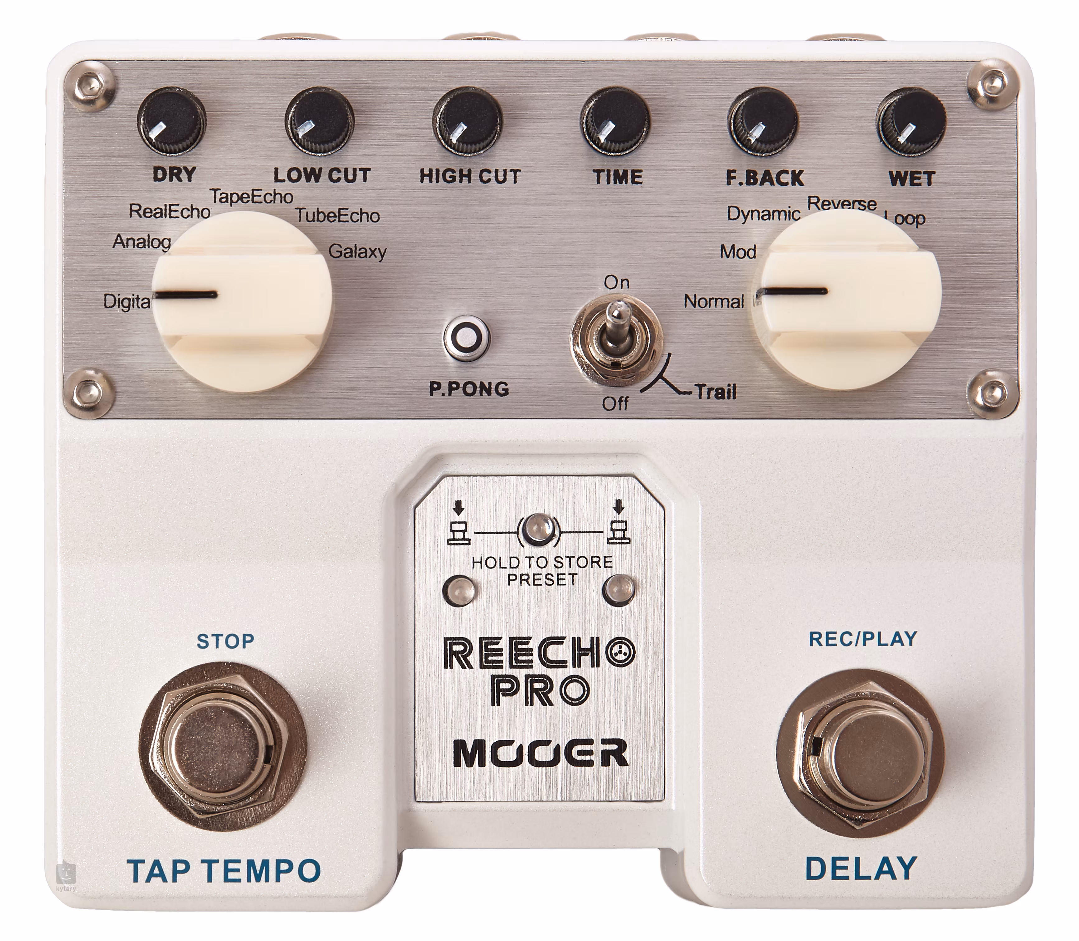 2x FS (tap tempo, Chorus), 2x Selector, Dry, Low Cut, High Cut, Time, F.Back, Wet, P. Pong