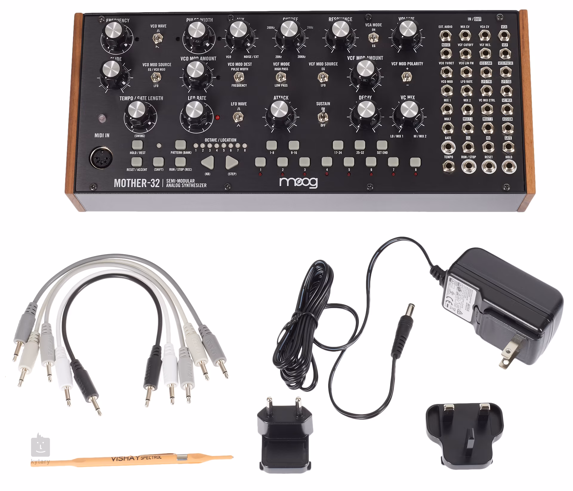 Das Mother 32 ist mit einem analogen Zehn-Oktaven-Oszillator und einem analogen Rauschgenerator ausgestattet. Die Signale werden dann in einem Mischpult gemischt, was eine dynamische Klangerzeugung und -manipulation ermöglicht. Der Ton wird dann in den Ladder-Filter übertragen. Es stehen zwei Sequenzierungsarten zur Verfügung, so dass jeder seine eigene Kreativität einsetzen kann. Ihre Klänge und Ideen können dann im Speicher abgelegt werden, der bis zu 64 Personen fassen kann.