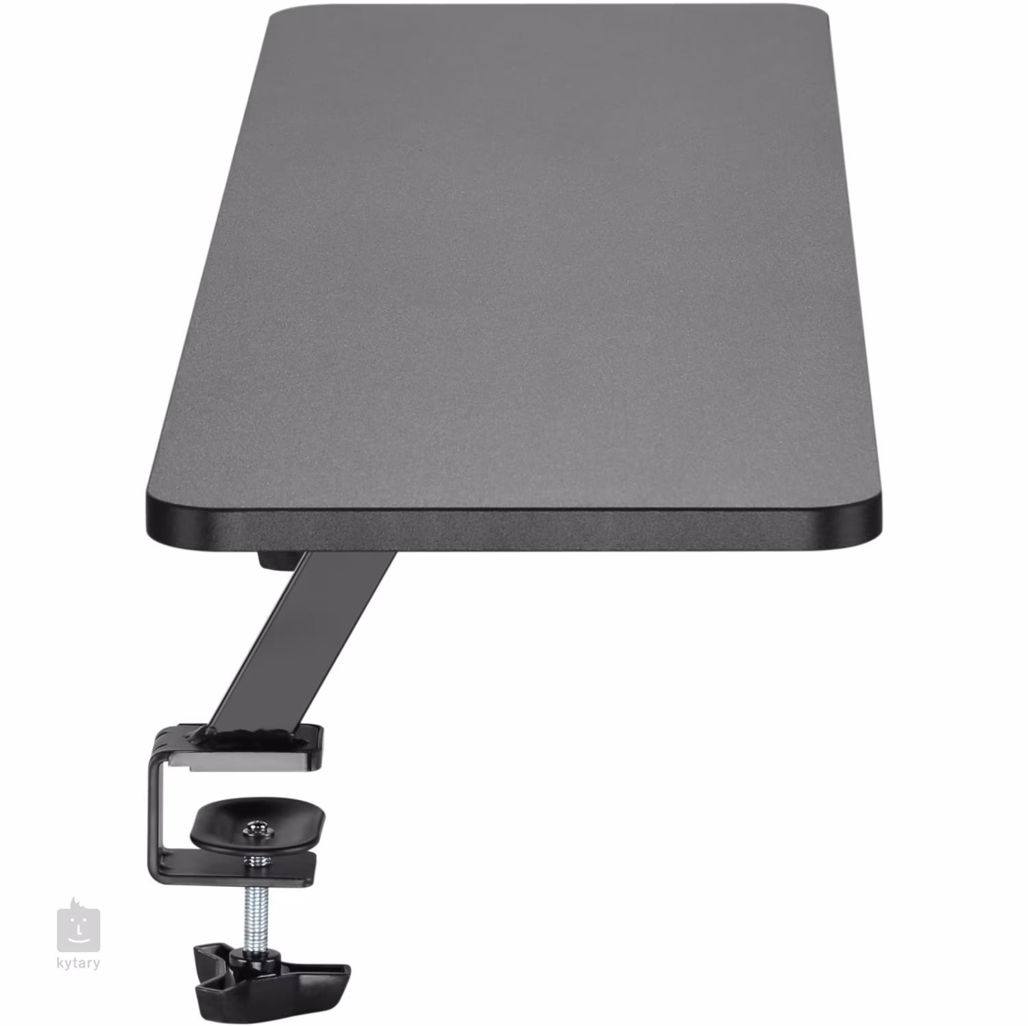 Eleganter Tisch für zwei Monitore (Laptop und Monitor), geeignet für Aufnahmestudio, Büro oder Arbeitszimmer. Der Tisch ist aus einer Kombination von Holz und Stahl gefertigt, kann einen Monitor bis zu einer Diagonale von 32" aufnehmen und wird über zwei Schraubgewinde am Tisch befestigt.