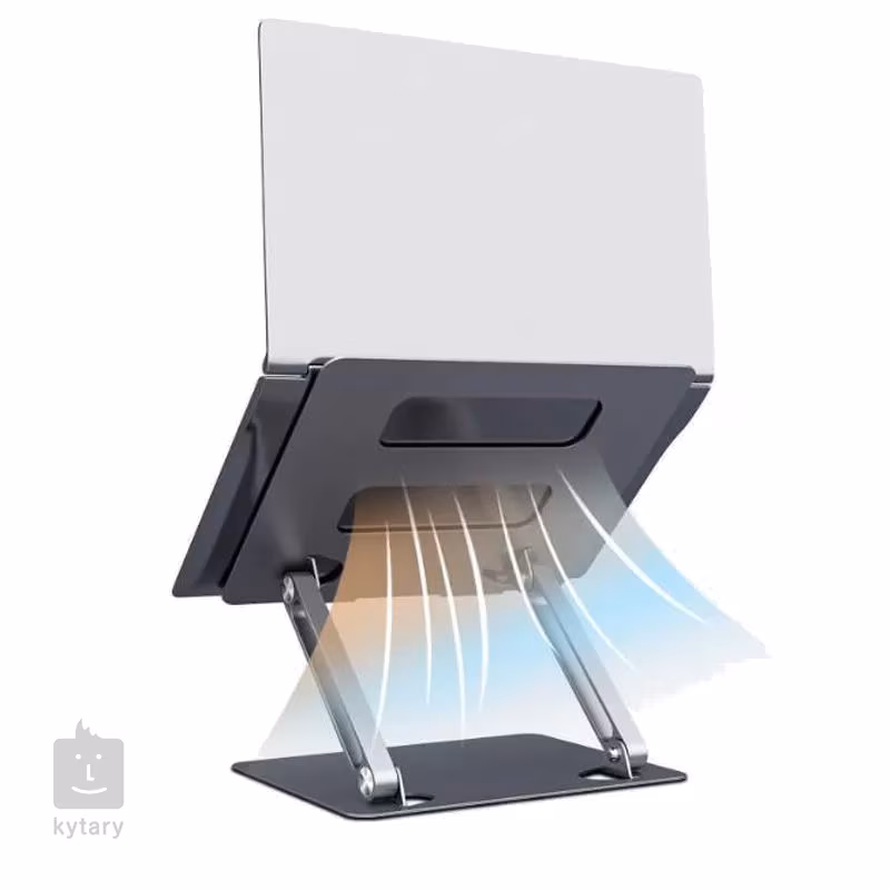 Die Konstruktion besteht aus haltbarem Aluminiumbarren, um Stärke und Haltbarkeit zu gewährleisten. Die Stabilität wird durch Anti-Rutsch-Pads aus Silikon und ein EVA-System unterstützt, das ein Verrutschen des Laptops während der Benutzung verhindert. Dank des offenen Raums unter dem Laptop ist ein effizienter Luftstrom gewährleistet, der zu einer besseren Kühlung des Geräts beiträgt und seine Lebensdauer verlängert.