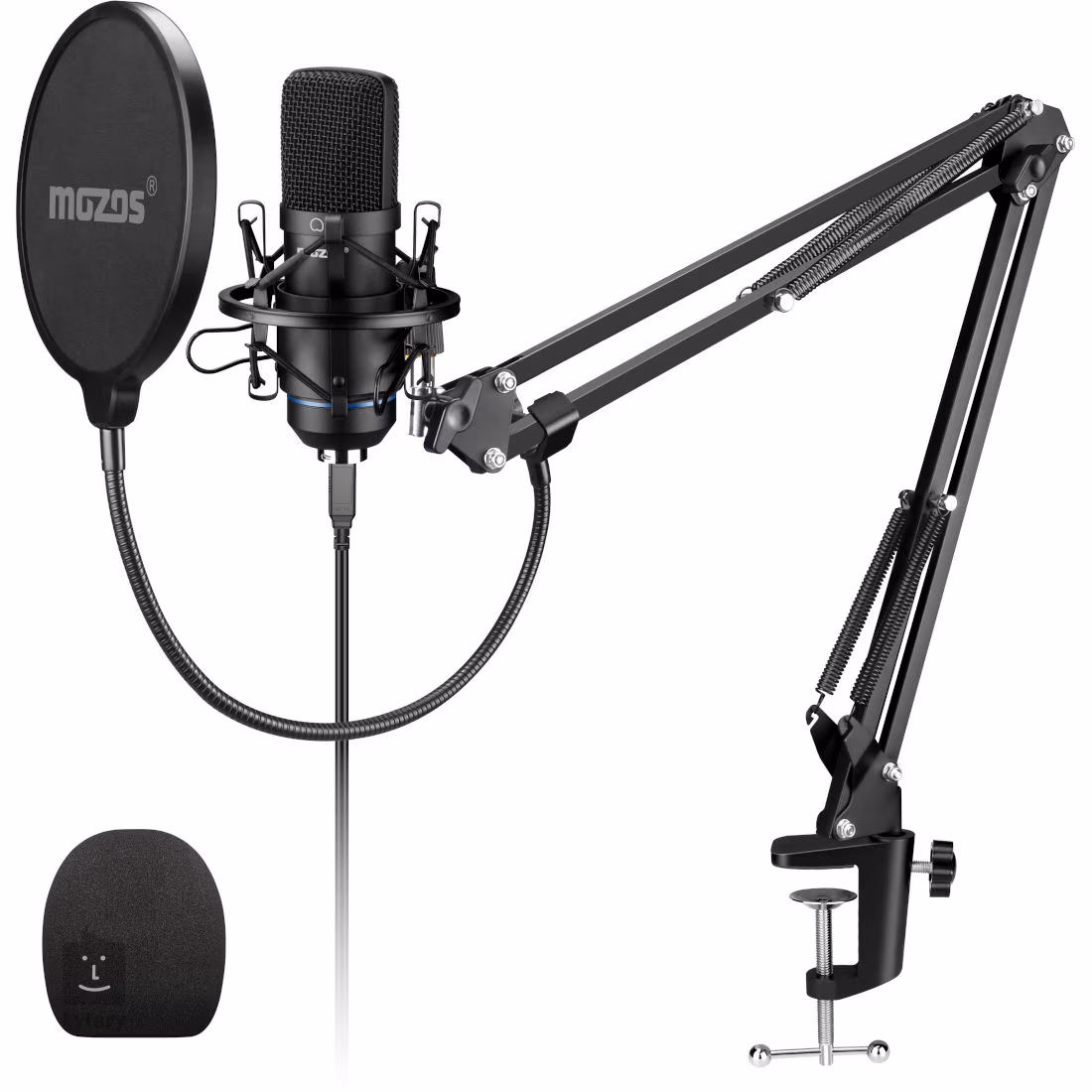 Das Mikrofon-Set Mozos MKIT-700PROV2 ist eine erschwingliche Lösung für angehende Content-Ersteller, Streamer und Podcaster, die sofort mit Aufnahmen in guter Qualität beginnen möchten, ohne zusätzliches Zubehör kaufen zu müssen. Der Hauptvorteil ist das Komplettpaket mit USB-Kondensatormikrofon, flexiblem Arm, Poppschutz, Windschutz und gefedertem Halter, sodass Sie nach dem Auspacken nur noch das USB-Kabel anschließen müssen und schon loslegen können.
