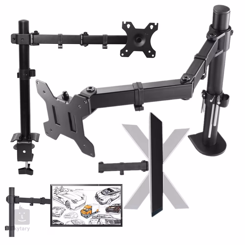 Der Mozos MS02 ist ein praktischer Halter für Computermonitore, der einfach an Ihrer Schreibtischplatte befestigt werden kann. Sie erhalten einen ästhetischeren Platz und mehr Möglichkeiten zur Positionierung Ihres Monitors. Die Stahlkonstruktion und die maximale Tragfähigkeit von 9 kg garantieren die Kompatibilität mit praktisch allen erhältlichen Monitoren mit Vesa 100 x 100 mm Befestigungsstandard und Diagonalen von 10" - 32". Sie haben die Möglichkeit, das Panel um 90° zu neigen, um 360° zu drehen und zu schwenken, um die Ausrichtung des Panels zu ändern. Dank der VESA-Schnellbefestigungsplatten können Sie die Installation einfach und intuitiv durchführen.