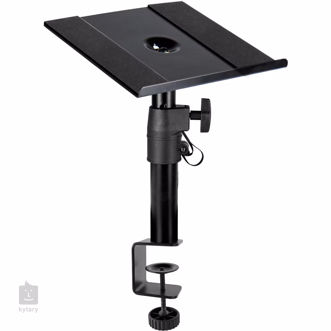 Die richtige Aufstellung der Lautsprecher ist einer der wichtigsten Parameter beim Aufbau eines Hörraums im Studio, aber auch zu Hause. Die Aufstellung direkt auf dem Schreibtisch verursacht unerwünschte Resonanzen, die nur schwer zu beseitigen sind. Die MSK3-Stative werden einfach an der Tischplatte befestigt, ohne diese zu beschädigen, und können in der Höhe oder Neigung feinjustiert werden. Der Sicherheitsflansch dient als Absturzsicherung, insbesondere wenn die Auflagefläche gekippt wird. Neben den Lautsprechern können Sie damit auch Ihren Laptop oder Projektor stilvoll platzieren.