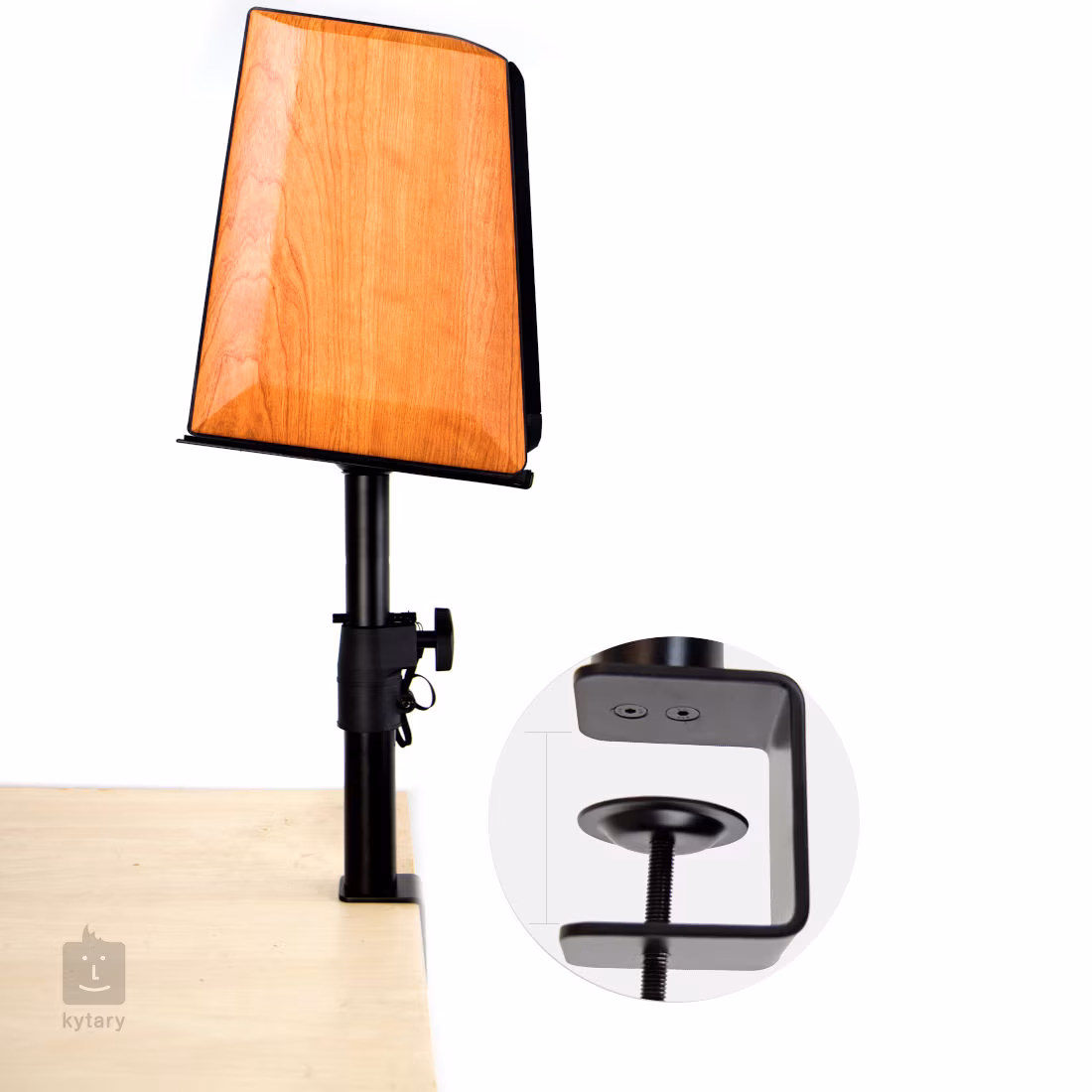 Die richtige Einstellung der Lautsprecher ist einer der wichtigsten Parameter beim Aufbau eines Hörraums im Studio, aber auch zu Hause. Die Platzierung direkt auf dem Tisch verursacht unerwünschte Resonanzen, die sich nur schwer beseitigen lassen. Die MSK3-Ständer lassen sich einfach an der Tischplatte befestigen, ohne diese zu beschädigen, und Sie müssen nur noch die Höhe oder Neigung einstellen. Der Sicherheitsflansch dient als Absturzsicherung, insbesondere bei Neigung der Auflagefläche. Diese können Sie neben Lautsprechern auch für die stilvolle Platzierung eines Laptops oder Projektors nutzen.