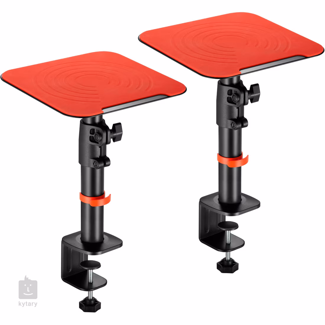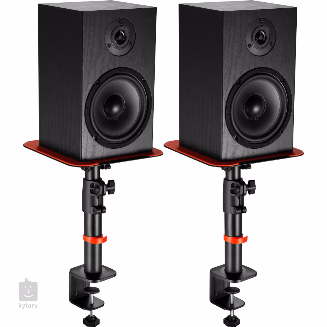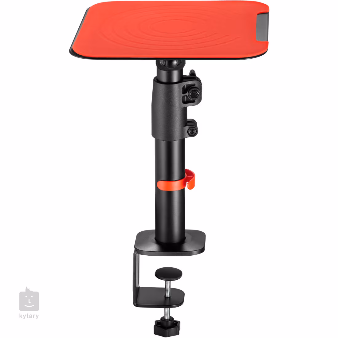 Robustes, höhenverstellbares Stativ für Studiomonitore und Lautsprecher. Er ist aus robustem Stahl gefertigt und verfügt über eine Gewindeschraube zur Befestigung an einer Tischplatte mit einer Höhe von bis zu 62 mm. Sie können die meisten auf dem Markt erhältlichen Monitore auf dem Ständer befestigen, wodurch er sich für Aufnahmestudios eignet, aber auch in Ihrem Heimkino, Proberaum oder Büro werden Sie ihn zu schätzen wissen.