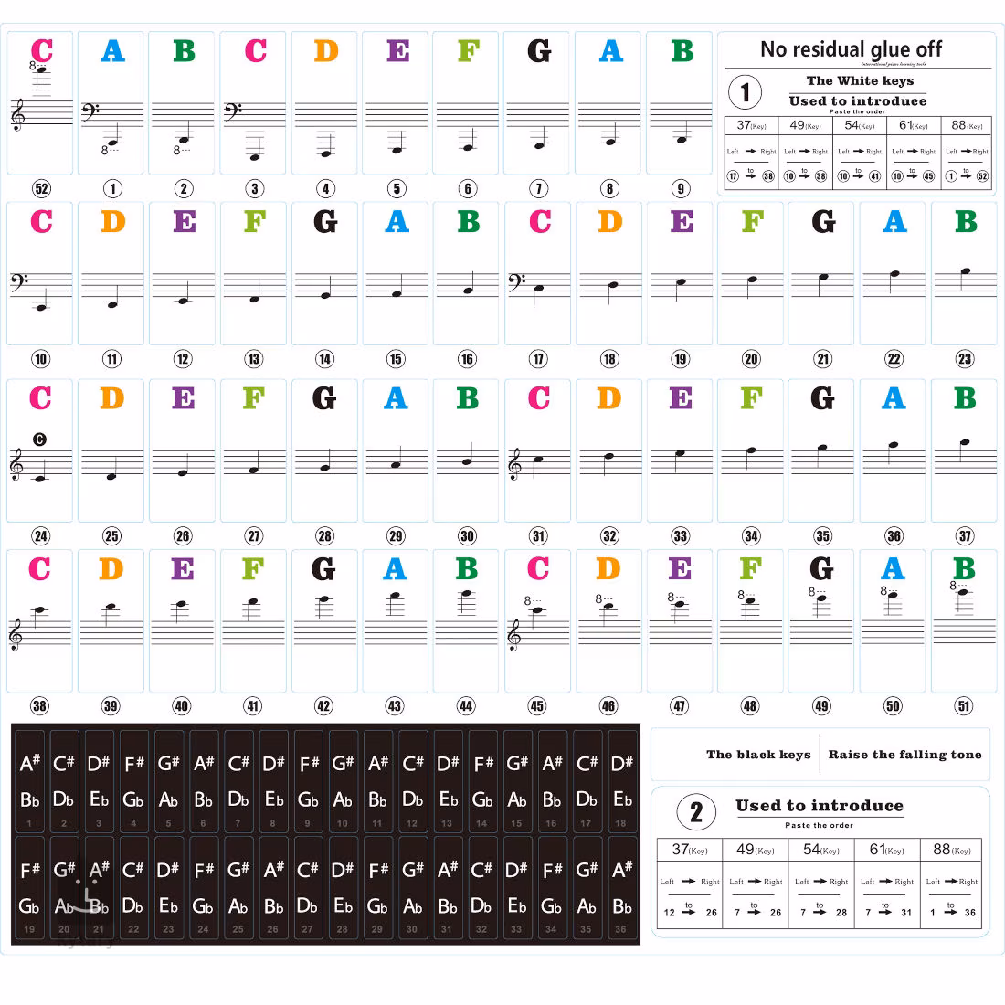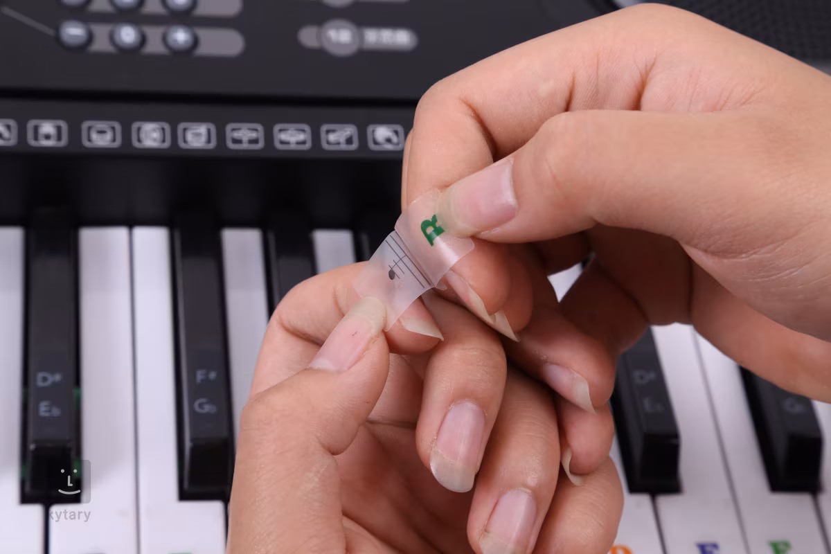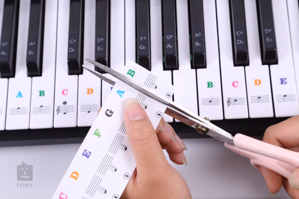 Aufkleber mit Tönen für Klavieranfänger, die gerade die Schönheit ihres Instruments entdecken, einschließlich Theorie und Musikunterricht. Die Packung enthält 88 Aufkleber mit farbkodierten Tonnamen und einer Musiknotation. Die Aufkleber sind aus haltbarem und hochtransparentem PVC-Material hergestellt, so dass sie jahrelang halten und das Lernen zum Kinderspiel machen.