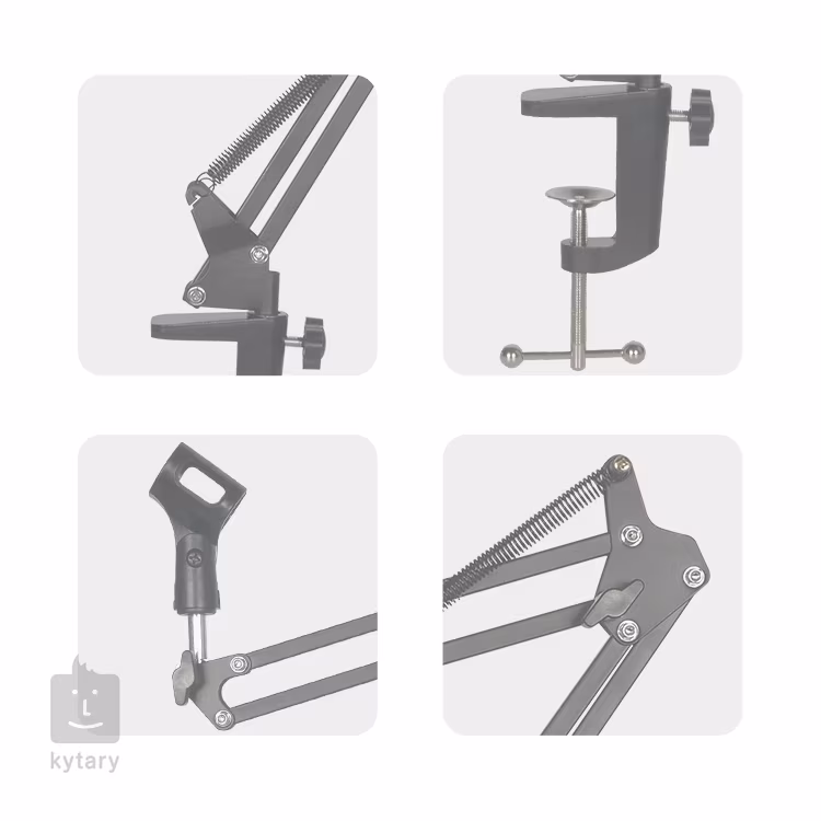 Professionelles Tischmikrofonstativ, geeignet für Live-Radioübertragungen, Synchronisationen oder die Erstellung von Originalvideos für Ihren YouTube-Kanal. Auf dem Mikrofonständer können Sie alle Arten von Mikrofonen aufstellen, der robuste Metallarm kann ein Gewicht von bis zu 1,5 kg tragen und lässt sich problemlos um 360° drehen. Das leichte und robuste Design ermöglicht es Ihnen, den Ständer leicht zu verstauen oder an jeden beliebigen Ort in Ihrem Heimstudio zu bringen. Dank der rutschfesten Klemme können Sie den Halter auf einer glatten oder glänzenden Oberfläche aufstellen.