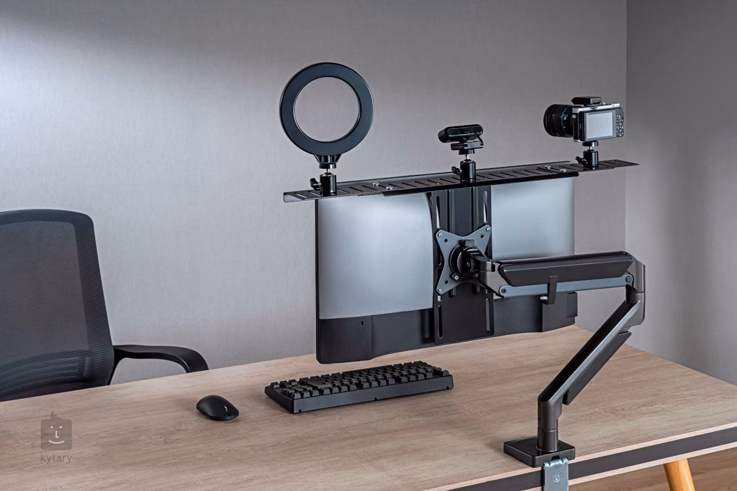 Mozos VS1-L ist ein praktisches Regal, das ein funktionelles Design für die Installation von verschiedenem Zubehör über dem LCD-Monitor bietet. Dieses Design hilft, den Arbeitsbereich aufgeräumt und organisiert zu halten und bietet Komfort für Videokonferenzen und Live-Streaming. Es ist ideal für Benutzer, die zusätzlichen Platz für die Montage von Kameras, Mikrofonen, Beleuchtung und anderem Zubehör benötigen.