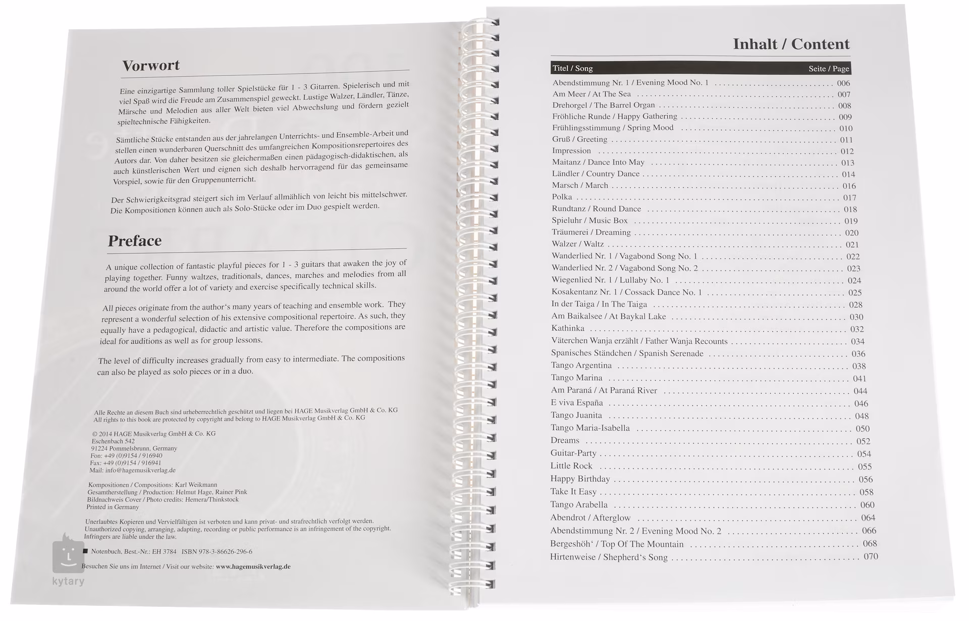 Diese Publikation enthält 100 Originalkompositionen für klassische Gitarre, arrangiert für Soloinstrument, Duett oder Gitarrentrio. Der Schwierigkeitsgrad der Stücke steigt allmählich an - von ganz leicht bis mittelschwer. Kompositionen aus der Feder eines erfahrenen Musiklehrers haben nicht nur einen didaktischen, sondern auch einen künstlerischen Wert und eignen sich daher für Gruppenaufführungen und Gruppenunterricht.