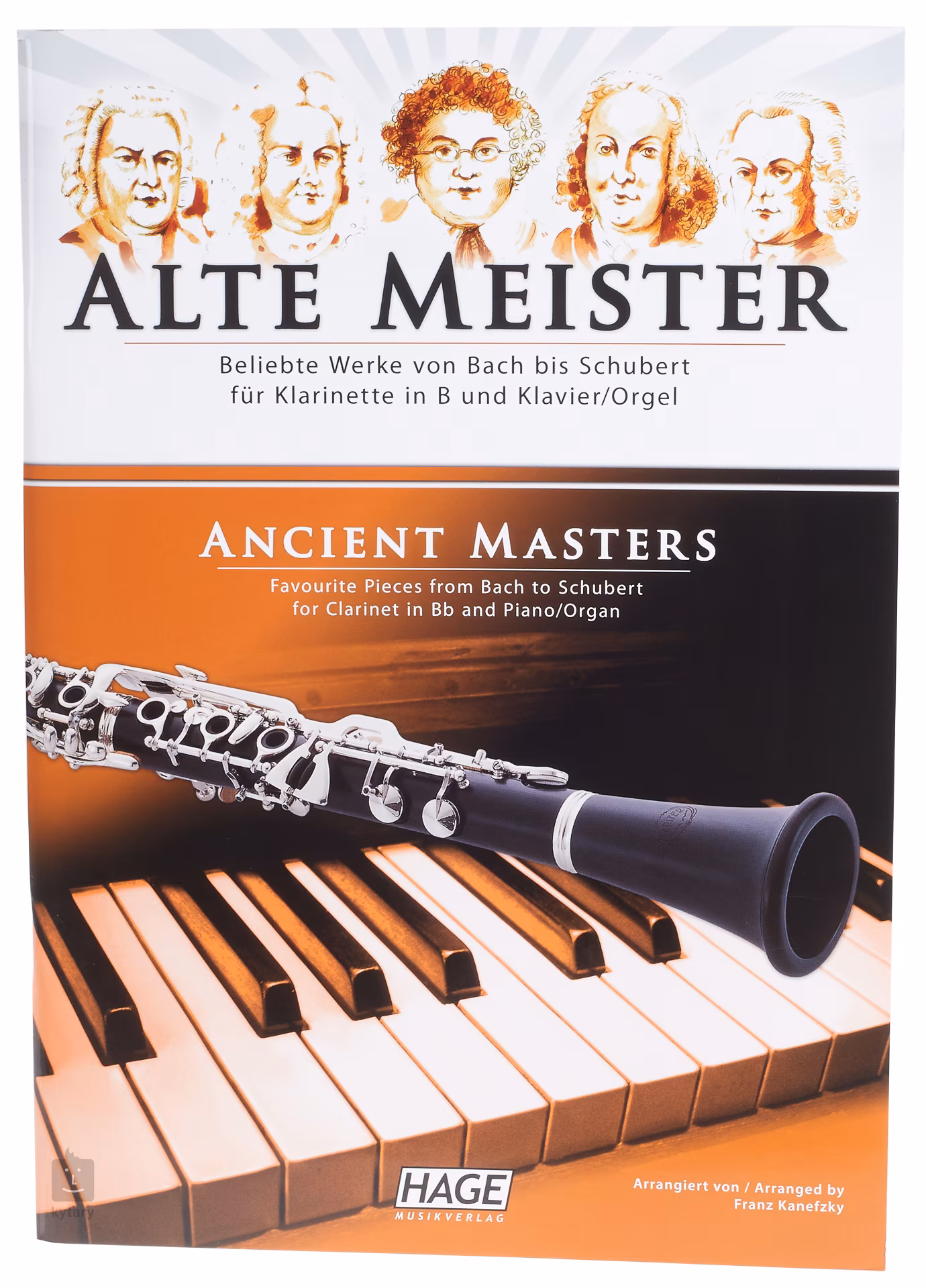 Ancient Masters enthält 29 bekannte Stücke der klassischen Musik (Barock, Klassik und Frühromantik) von Musikgrößen wie Bach, Haydn, Vivaldi, Mozart, Schubert und anderen, arrangiert für B-Klarinette solo mit Begleitung für Klavier/Orgel.