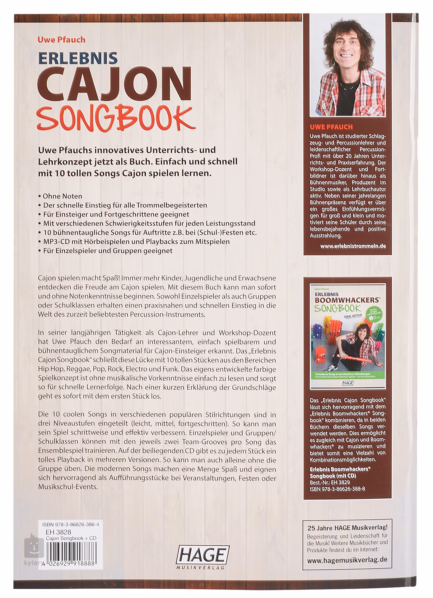 Das Erlebnis Cajon Songbook ist ein Begleitbuch zur Cajonschule des deutschen Autors Uwe Pfauch. Es bietet zehn Songs aus den Genres Pop/Rock, Reggae, Funk, Elektro und Hip-Hop in leichten Arrangements, die für Anfänger geeignet sind. Die Strecken sind nach Schwierigkeitsgrad in drei Gruppen unterteilt (leicht, mittel, fortgeschritten).