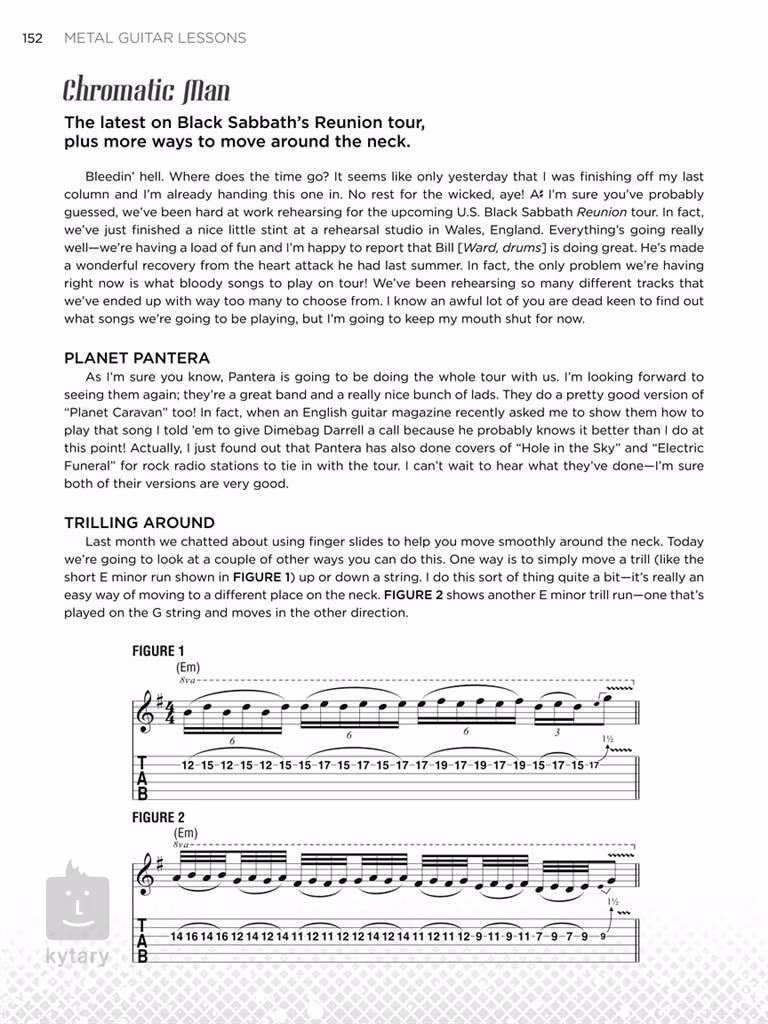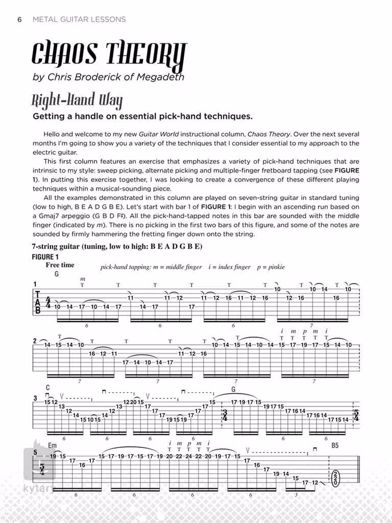 Lernen Sie von den Besten. Guitar World Presents Metal Guitar Lessons enthält 75 Artikel, die auf den Seiten des Magazins Guitar World veröffentlicht wurden, unter anderem von Tony Iommi, Slash, Dimebag Darrell, Kerry King, Zakk Wylde, Dave Mustaine, Marty Friedman, Eric Peterson, Chris Broderick, Matt Heafy und Dave Davidson. Das Buch deckt eine breite Palette von Themen ab (von Tipps zum Aufwärmen vor dem Konzert bis hin zu Erklärungen von Techniken), die Ihnen helfen, Ihr Spiel auf die nächste Stufe zu heben.