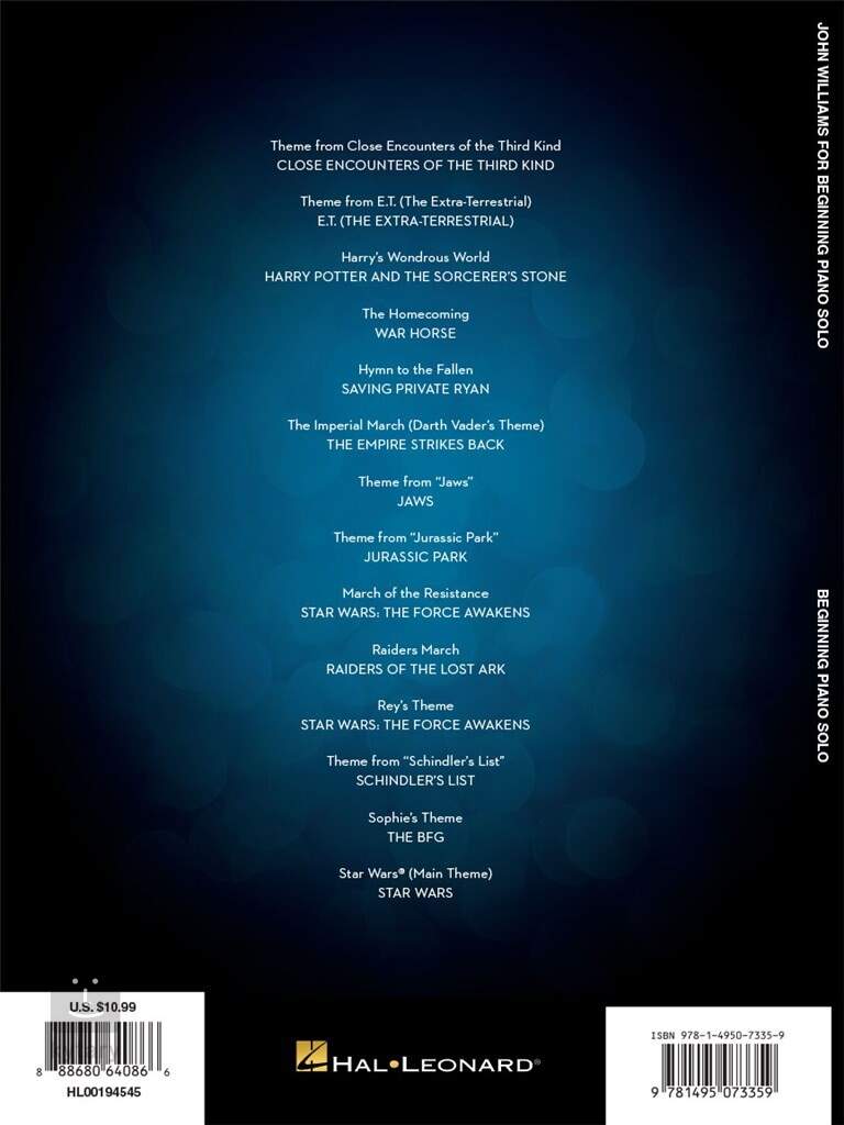 Eine Auswahl berühmter Filmmelodien des amerikanischen Komponisten John Williams in leichten Bearbeitungen für Klavier, die auch von Klavieranfängern bewältigt werden können.