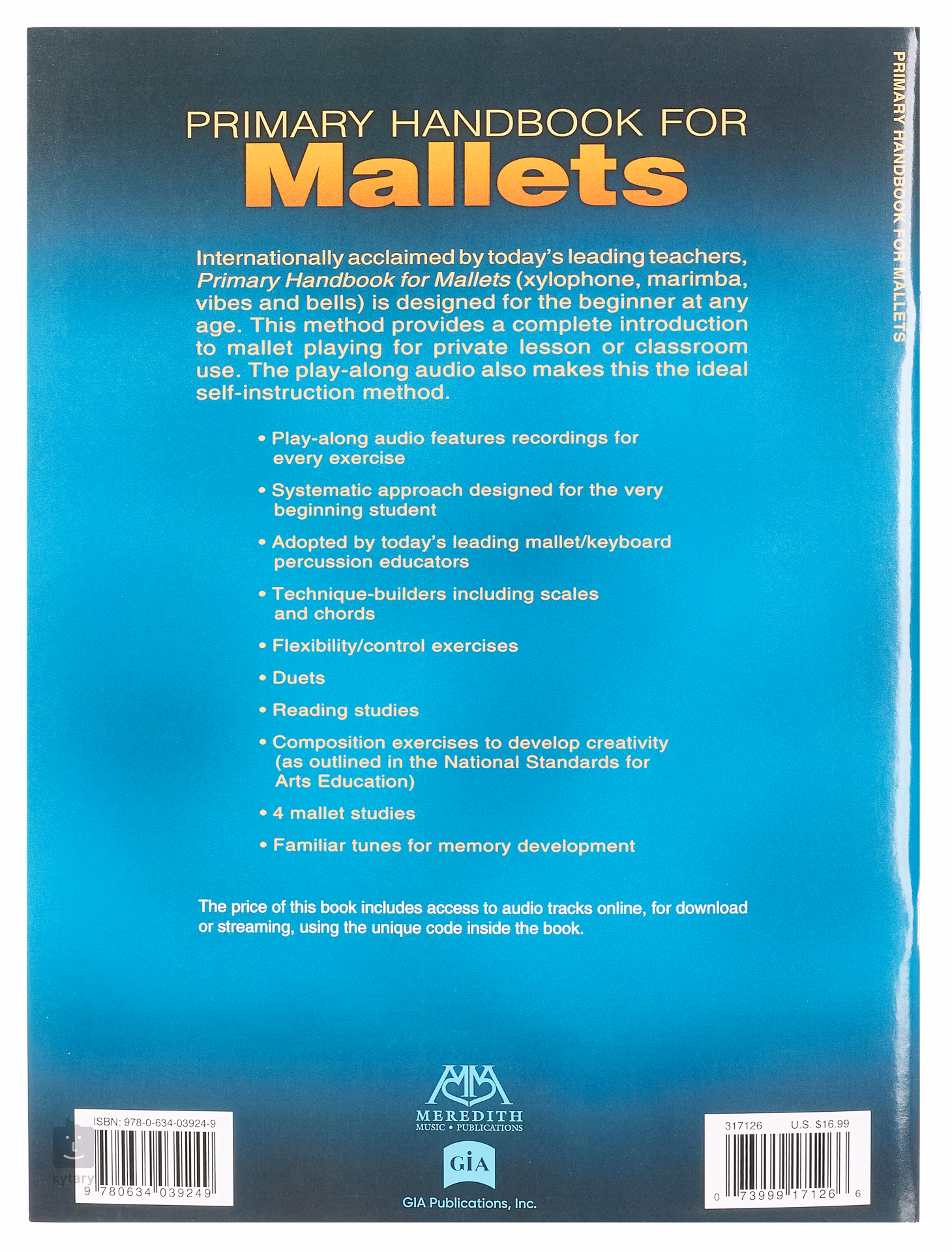 Primary Handbook for Mallets ist eine Schule für melodisches Schlagzeug (z. B. Xylophon, Vibraphon, Marimba) für Anfänger aller Altersgruppen. Es enthält eine vollständige Einführung in das melodische Schlagzeugspiel und eignet sich daher für den Unterricht in Musikschulen und im Einzelunterricht. Mit der Veröffentlichung erhalten Sie auch Zugang zu Online-Audio-Materialien, die Sie streamen oder herunterladen können. Im multifunktionalen Audioplayer PLAYBACK+ können Sie Aufnahmen ohne Änderung der Stimmung verlangsamen, Abschnitte zum Abspielen/Loopen einstellen oder die Stimmung ändern.