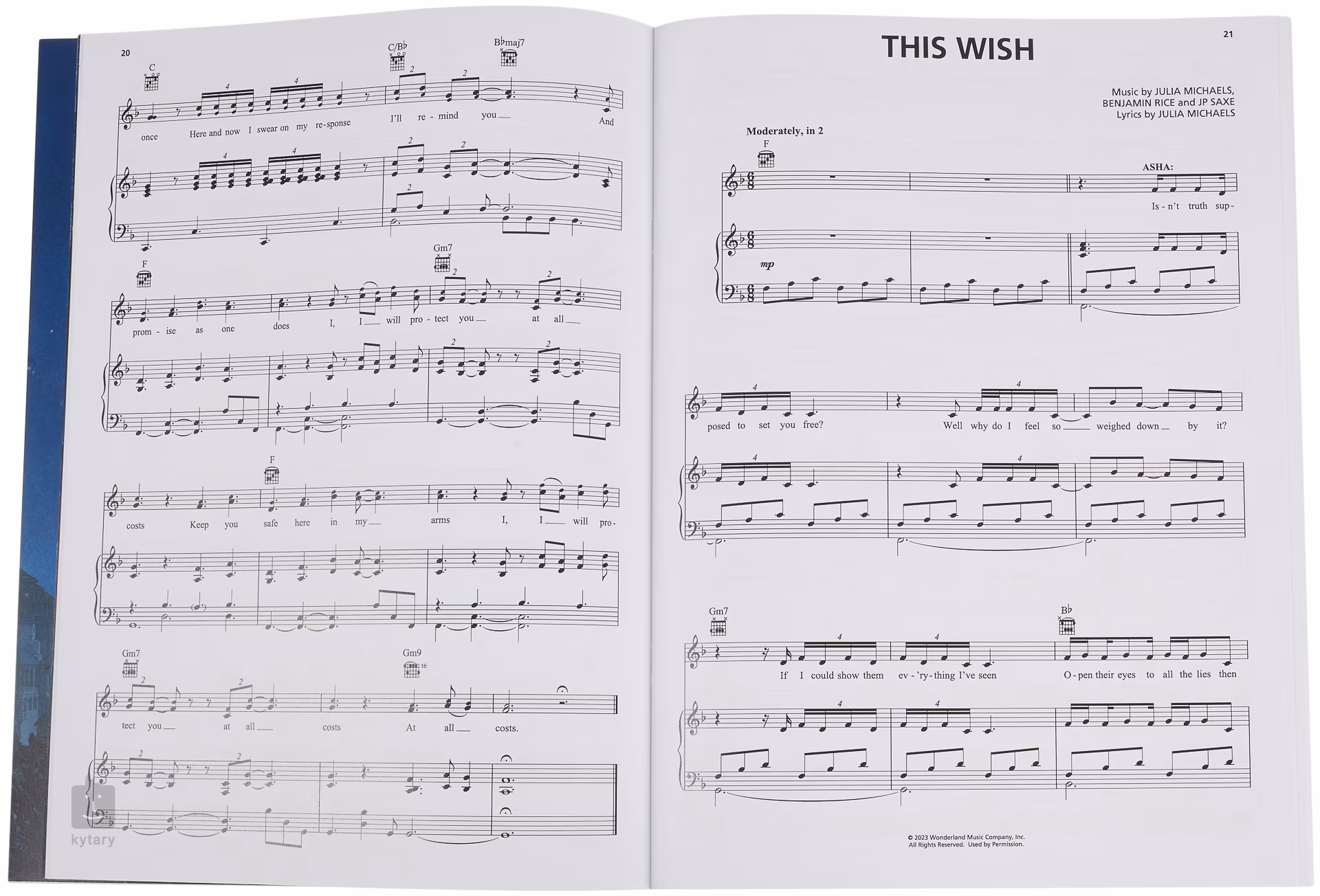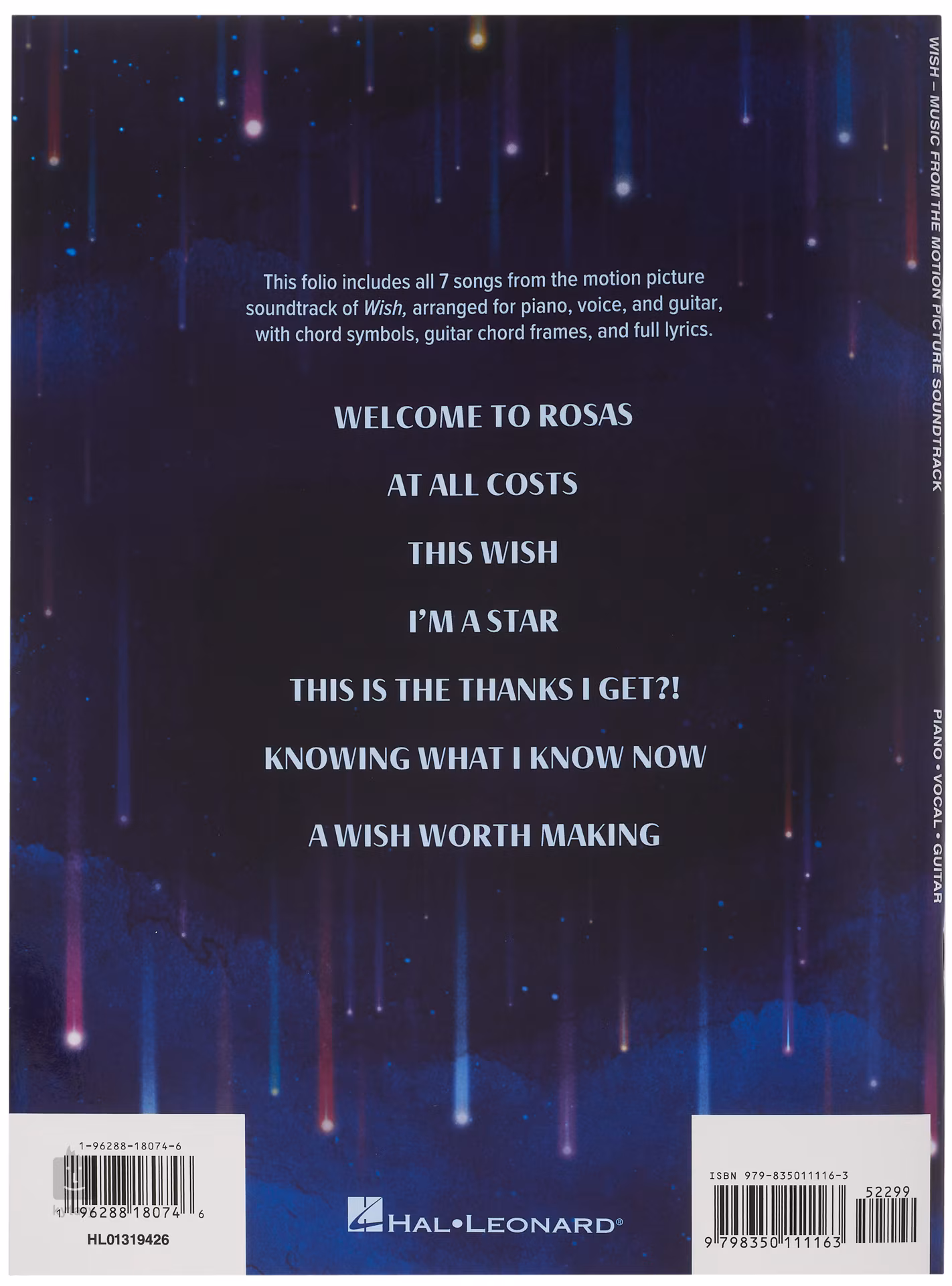 Wish bietet Songs aus dem Walt Disney Zeichentrickfilm Wish, arrangiert für Klavier, Gesang und Gitarre.