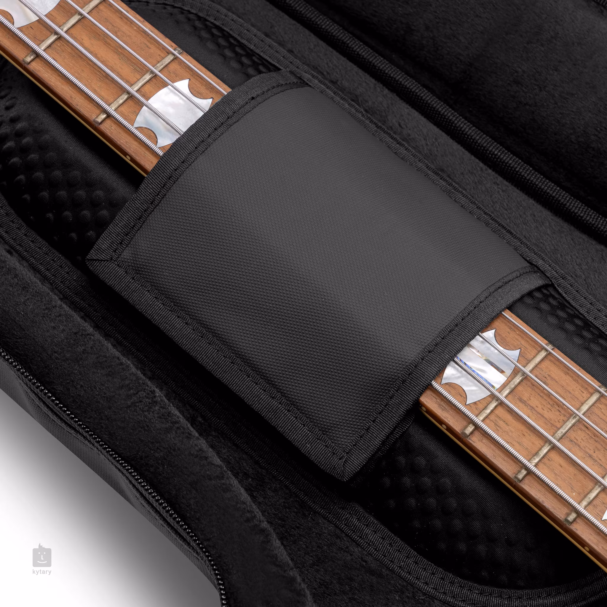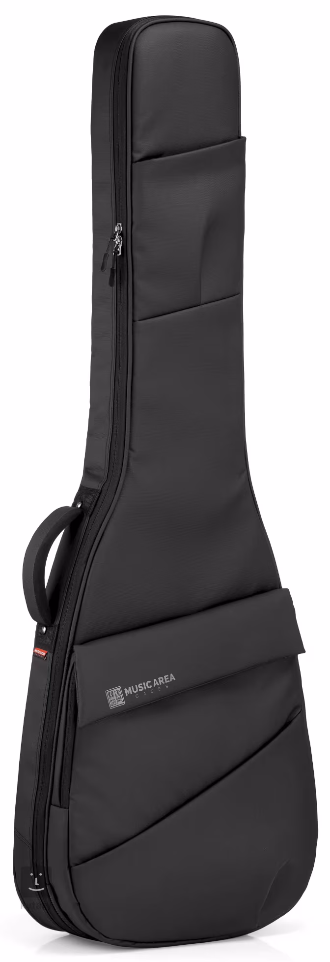 Die Taschen der Marke Music Area aus der FDA-Serie schützen Ihr Instrument vor allen Gefahren, die hinter der Tür Ihres Zimmers lauern. Dieses Modell ist für E-Bässe gedacht. Während das strapazierfähige, wasserdichte Polyester Schutz vor Regen und Feuchtigkeit bietet, sorgen die 25 mm dicke Polsterung und die Polypropylen-Rückenverstärkung für grundlegende Sicherheit bei unerwarteten Stürzen und Stößen. Das Innere der Tasche ist mit einem weichen Plüschfutter ausgekleidet, das besonders schonend zum Holz und Lack Ihres Instruments ist. Im Halsbereich befindet sich eine weiche, präzise geformte Halterung mit Klettverschluss, die den Hals Ihres Basses perfekt fixiert, damit er im Koffer nicht hin- und herrutscht. Zusätzliche 15 mm Polsterung sorgen für den Schutz von besonders gefährdeten Stellen wie dem Kopf und dem unteren Teil des Korpus.