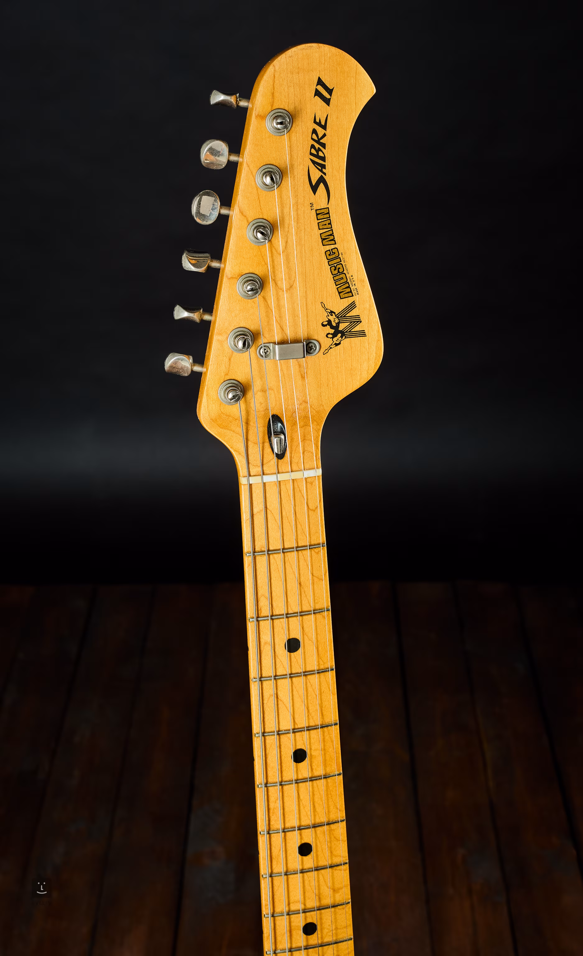 Die Sabre II ist ein Modell, das Music Man in der zweiten Hälfte der 70er Jahre auf den Markt brachte. Teil dieser Vision war es, den Musikern ein vielseitiges Instrument zu bieten, dessen klangliche Möglichkeiten durch aktive Elektronik erweitert werden sollten. Hals: Ahorn (Griffbrett-Radius 7,25"). Korpus: Esche in der Naturlackierung „Natural“. Die eben erwähnte Elektronik ist bei diesem Instrument noch original; laut den internen Datumsangaben wurde die Gitarre im Jahr 1978 gebaut.
