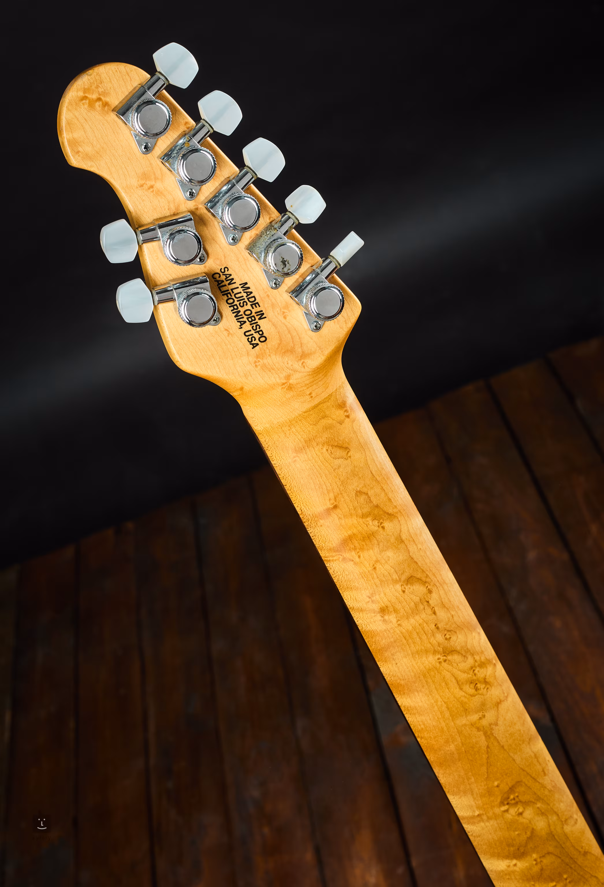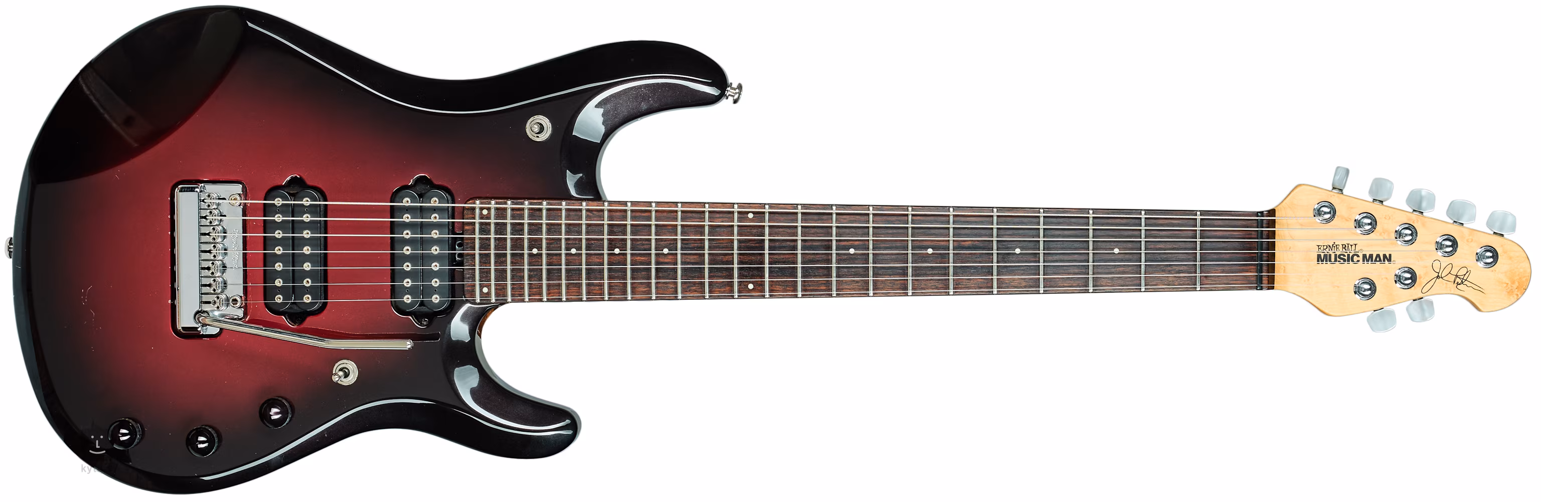 Eine siebensaitige Version des JP-Modells mit einem Piezo-Tonabnehmer im Hals, lackiert in dunkelroter Büste. Das Instrument wurde im Jahr 2003 in den USA hergestellt.
