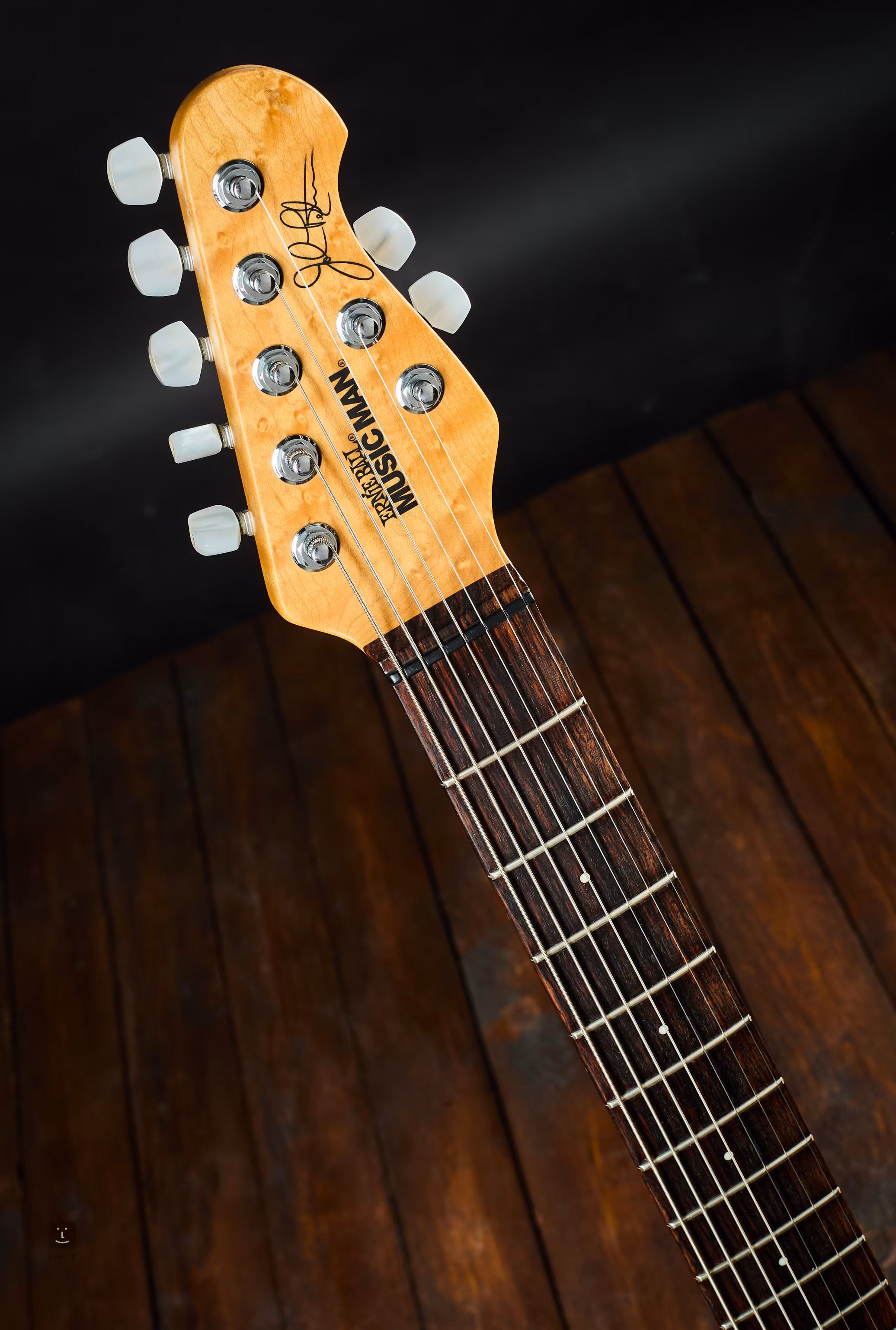 Das Signature-Modell von John Petrucci von der Band Dream Theater gilt als industrieller Maßstab im Bereich der werksseitig hergestellten Gitarren - die Verarbeitung kennt keine Kompromisse und die Ergonomie der Handhabung und des Spielens des Instruments ist hervorragend, ganz zu schweigen von der Qualität des Tons, die dank der ausgewählten Hölzer unbestreitbar ist. Das Griffbrett ist aus Palisander, der Hals aus Ahorn, der Korpus aus Lindenholz.