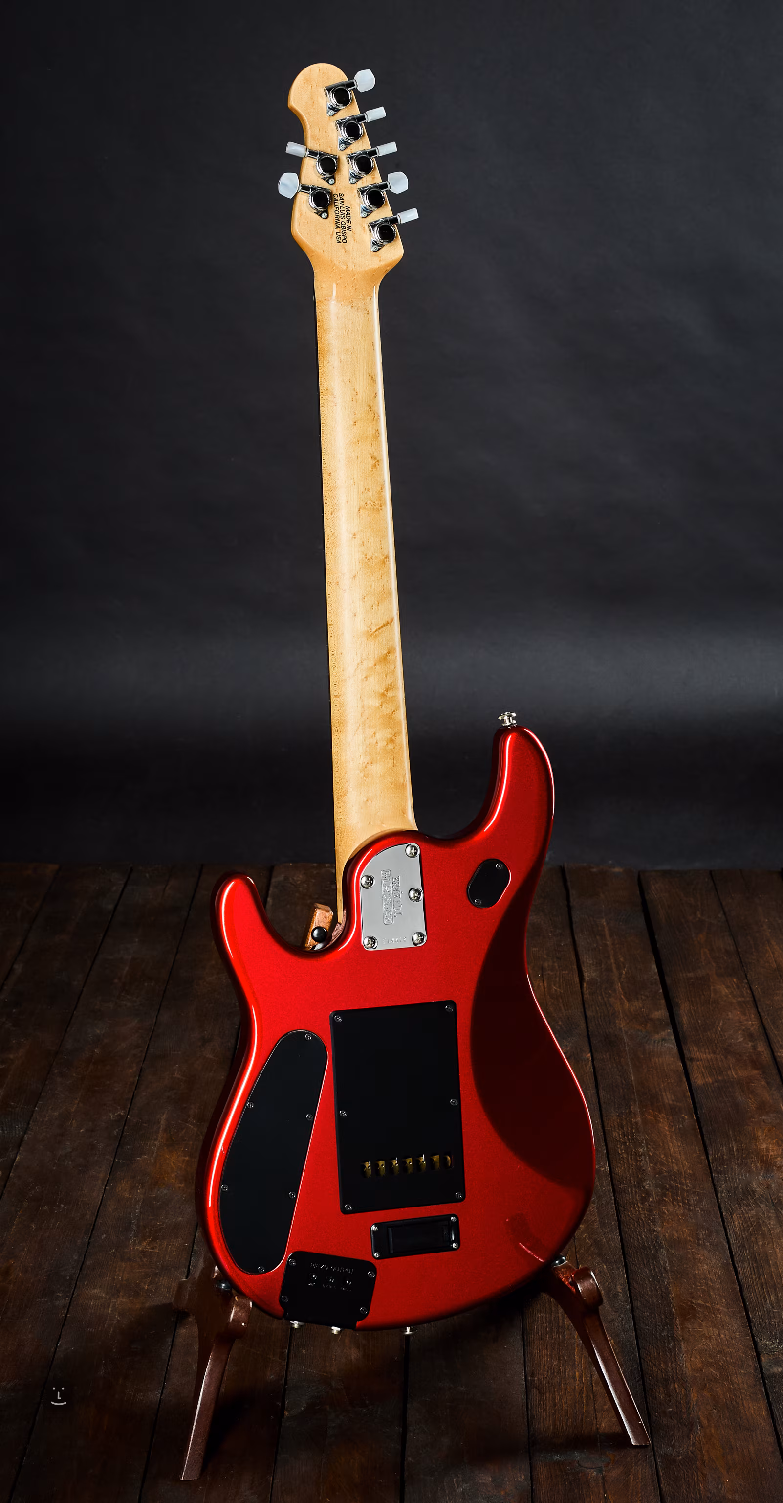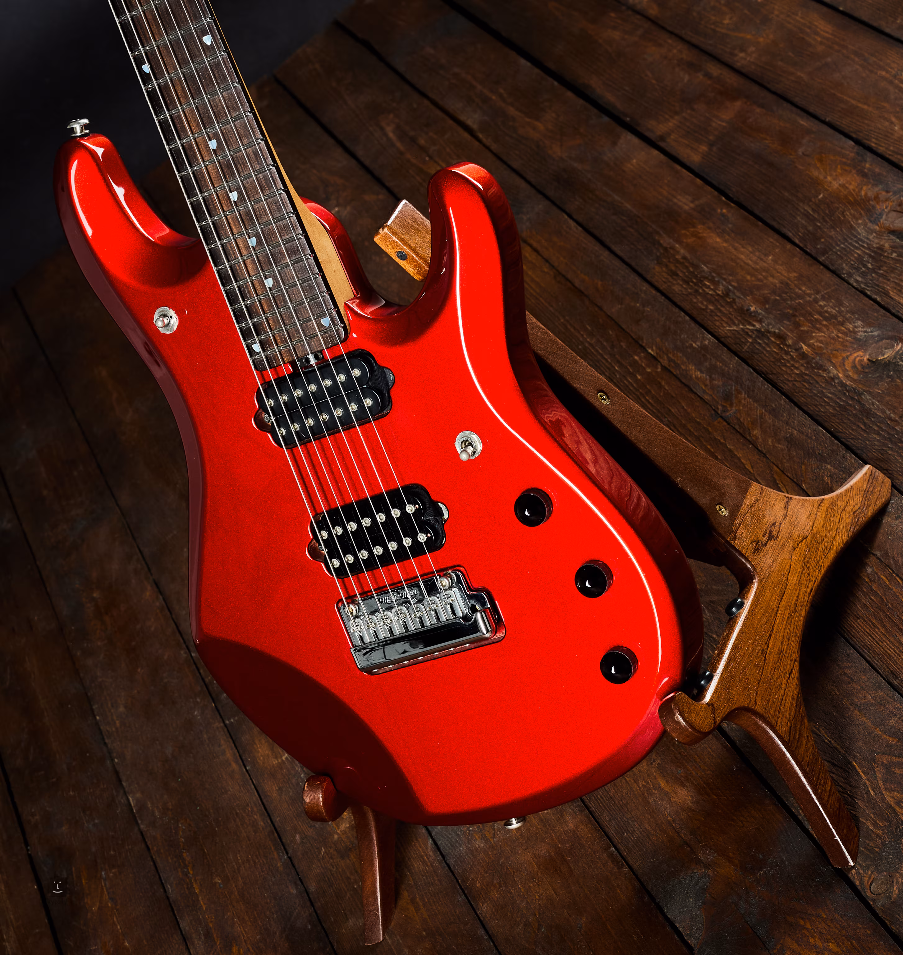 Siebensaitige Version des Modells JP6 mit Piezo-Tonabnehmer in der Kopfplatte, lackiert in Rotmetallic mit passender Kopfplatte. Das Instrument wurde im Jahr 2006 in den USA hergestellt.