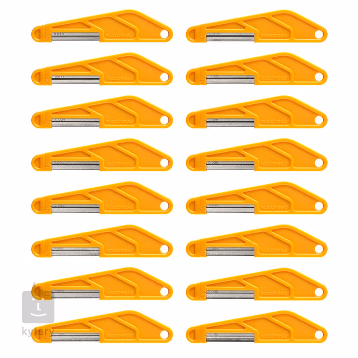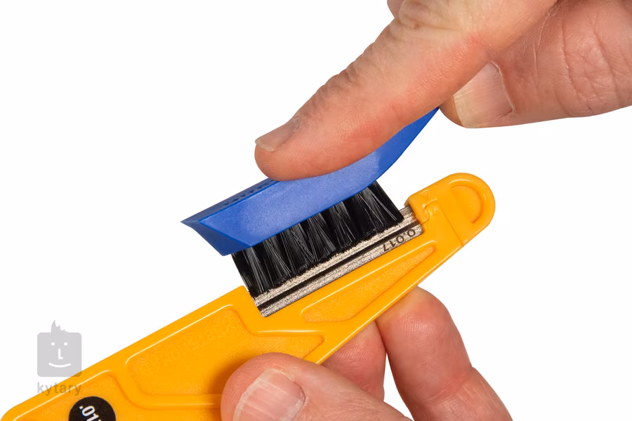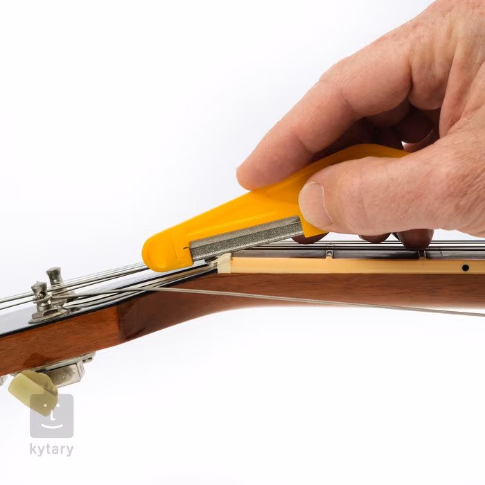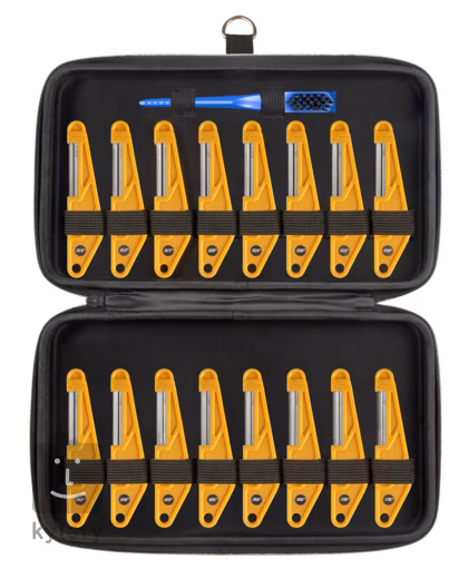 Feilensatz zur einfachen und präzisen Erstellung oder Erweiterung von Rillen für Saiten im Griffbrett. Diese patentierten Feilen verfügen über Schleifblätter mit einer speziellen industriellen Diamantbeschichtung, die die tatsächliche Form der Saite genau nachbilden. So können Sie ganz einfach schleifen und erhalten präzise Rillen, die nicht mehr nachpoliert werden müssen. Diese Feilen eignen sich für alle herkömmlichen Materialien wie Nylon, Kunststoff, Knochen, Graphit und TUSQ, können aber auch zum Schleifen von Grashüpfer-Sätteln verwendet werden. Die Klinge der Feile befindet sich in einem ergonomischen Griff, aus dem sie bei Bedarf leicht herausgenommen werden kann. Ein robuster Aluminiumkoffer und eine Reinigungsbürste sind ebenfalls im Lieferumfang enthalten.