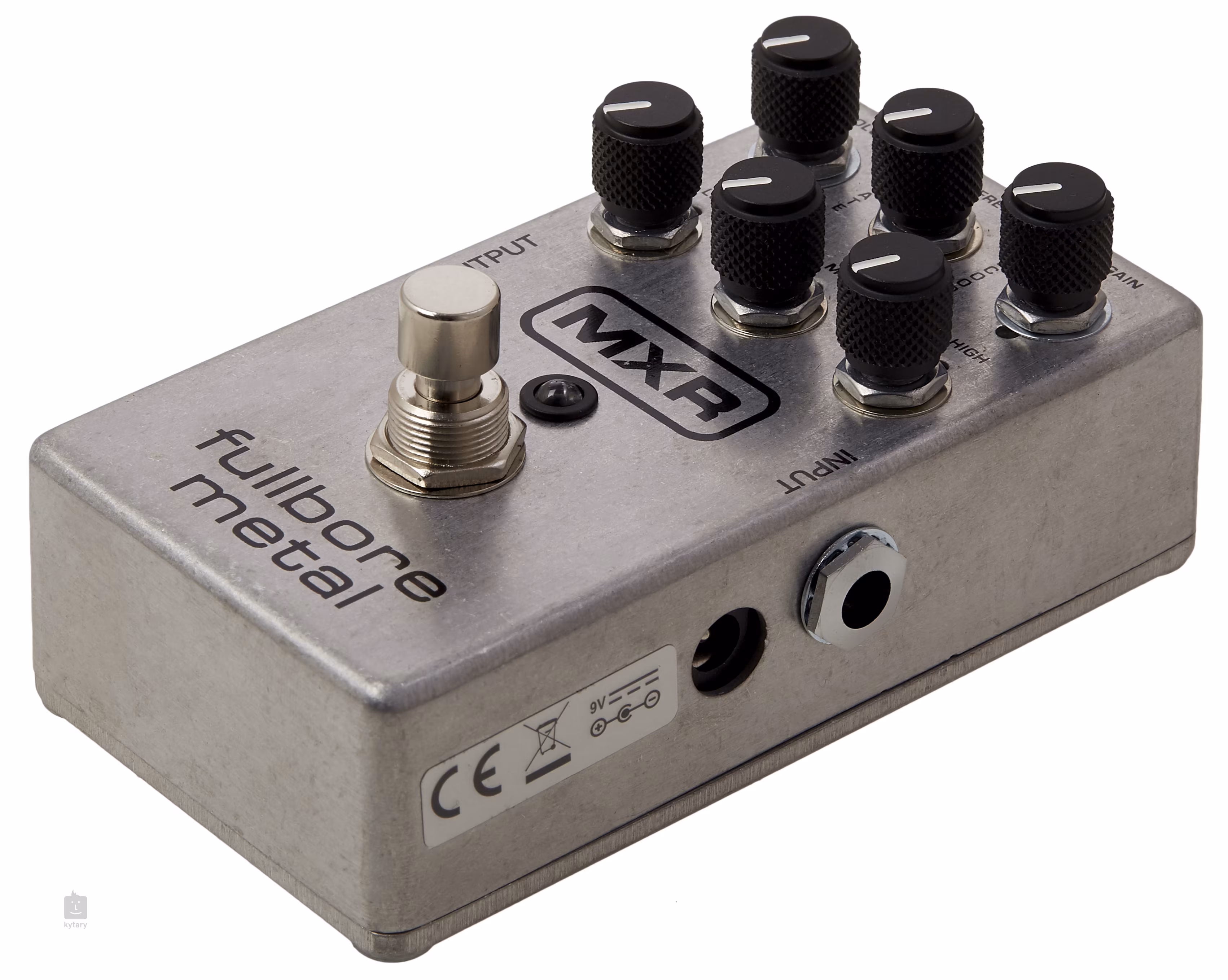 MXR Fullbore Metal ist ein Hi-Gain Distortion Pedal für reine Metalheads und alle Fans kompromissloser Stile im Allgemeinen. Es bietet einen richtig dicken, rollenden Metal-Sound und eine Portion Gain, die schwächere Naturen nicht verkraften können. Der Charakter des Tons lässt sich mit dem Dreiband-EQ formen, wobei die Mittenfrequenzen gleichzeitig mit dem Freq-Regler das Arbeitsfrequenzband (200 Hz bis 5 kHz) auswählen. Die Standardregler für Volume und Gain werden durch zwei Schalter ergänzt - der erste aktiviert das eingebaute Noise Gate und filtert unerwünschtes Brummen heraus, der zweite stellt das Clipping der Mittenfrequenzen ein.